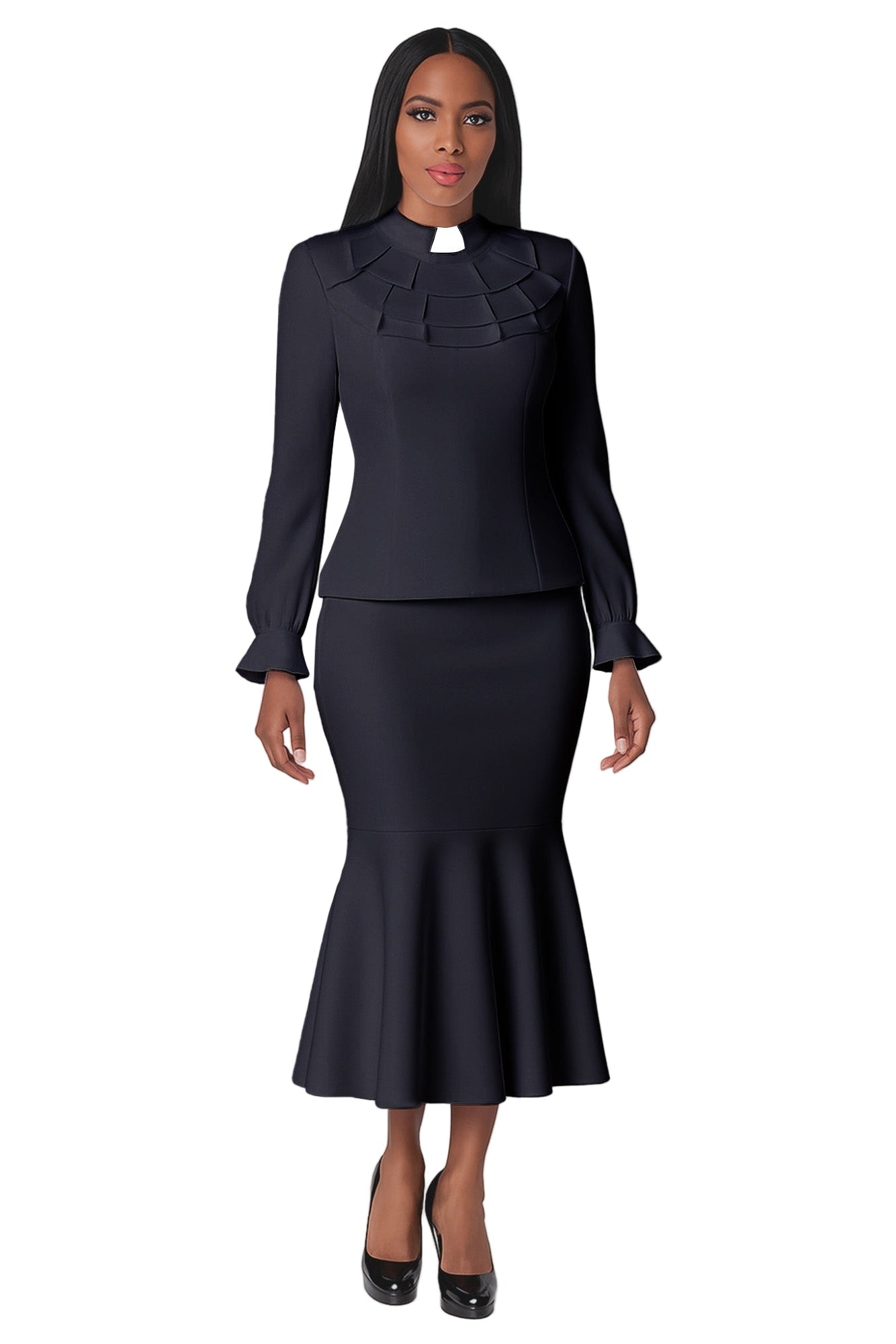 The High-Low Church Suit with Embellished Collar is a true showstopper. The high-low hem adds flair and movement, while the embellished collar sparkles like Christmas lights. It’s perfect for Christmas Eve or Christmas Day services, choir performances, or even holiday banquets. Add silver or crystal jewelry for extra shine, and wear it with confidence as you spread the joy of the season.