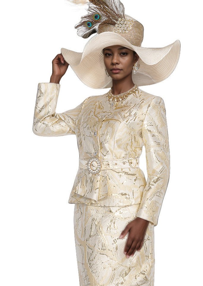 A. If you prefer something more formal, try the High-Low Church Suit with Embellished Collar or the Abstract Brocade Two-Piece Suit. These pieces are polished, flattering, and perfect for choirs, usher groups, or church banquets.