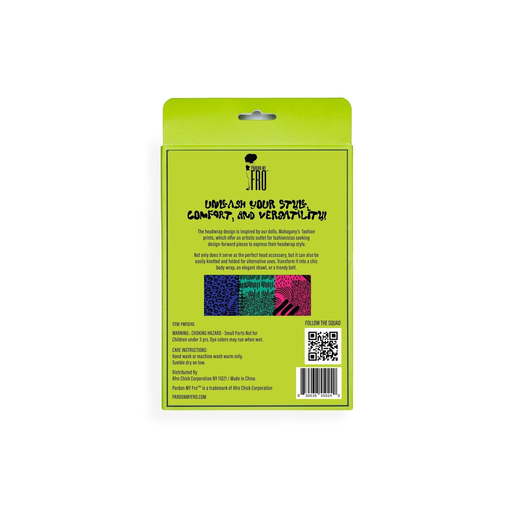 The headwrap design is inspired by our doll, Mahogany’s fashion prints, which offer an artistic outlet for fashionistas seeking design-forward pieces to express their headwrap style. Not only does it serve as the perfect head accessory, but it can also be easily knotted and folded for alternative uses. Transform it into a chick body wrap, an elegant shawl, or a trendy belt.