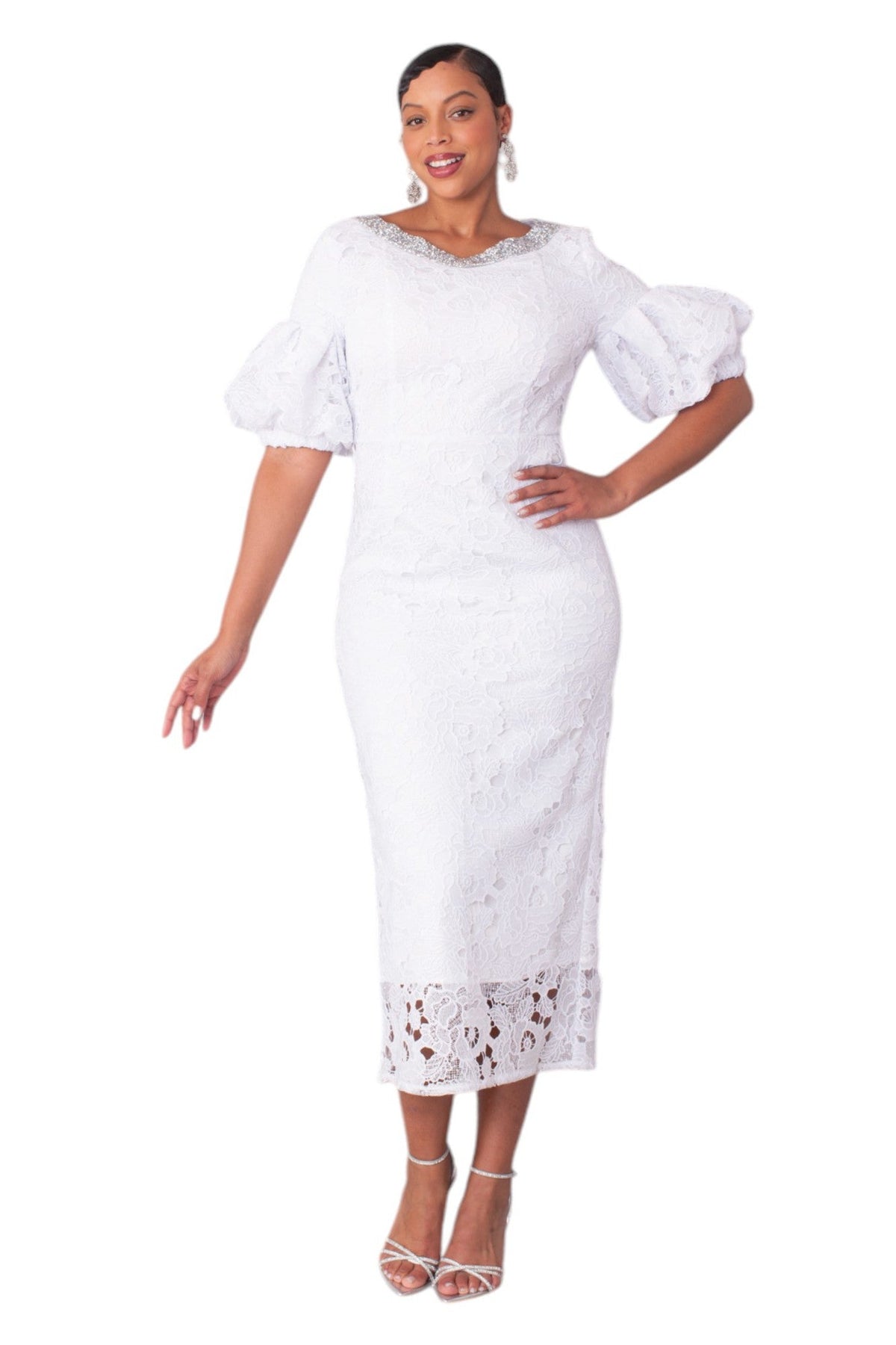 Lacy Dress with Puff Sleeves and Sparkling Neckline - 4888 - Especially Yours