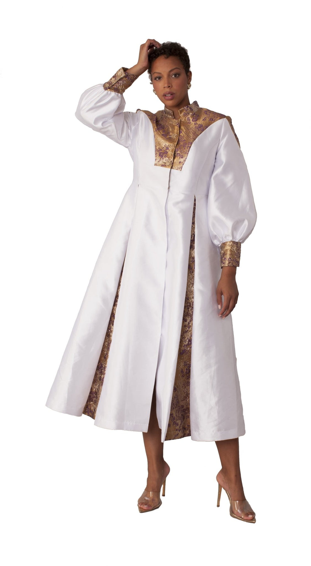 This elegant plus size clergy robe blends classic tradition with modern details. Featuring bishop sleeves, a mandarin collar, and golden brocade trim, it’s perfect for female clergy, choir members, or formal religious ceremonies. Crafted in luxurious fabric with a flowing silhouette, this robe delivers a flattering and dignified look. Available in white/gold and purple/gold, it's ideal for those seeking a refined bishop robe, white choir robe, or special occasion church attire.