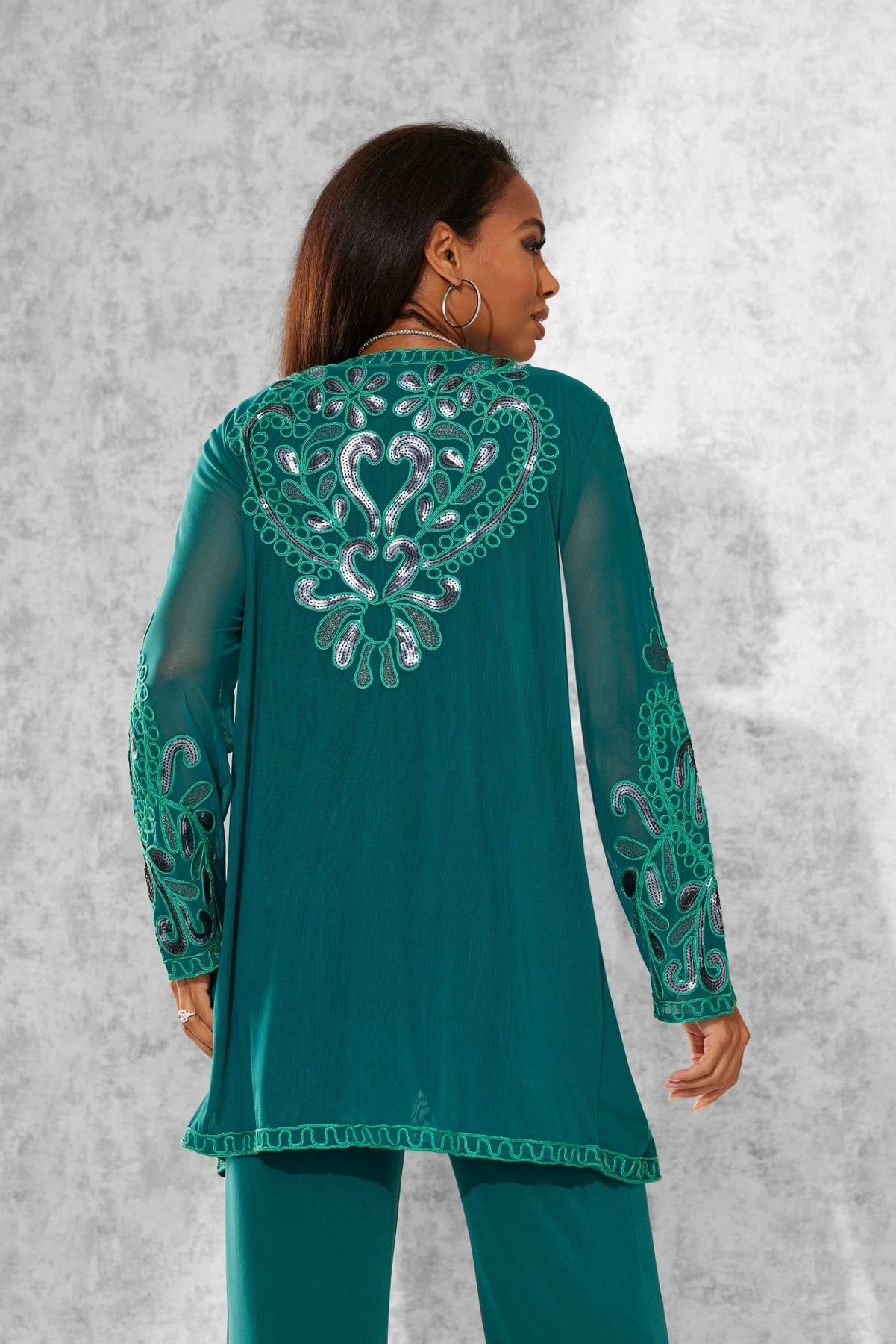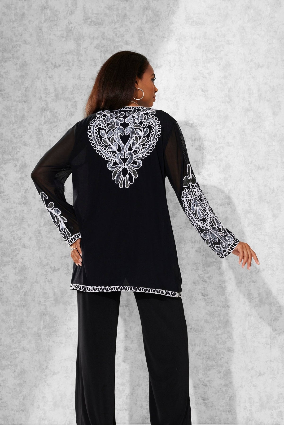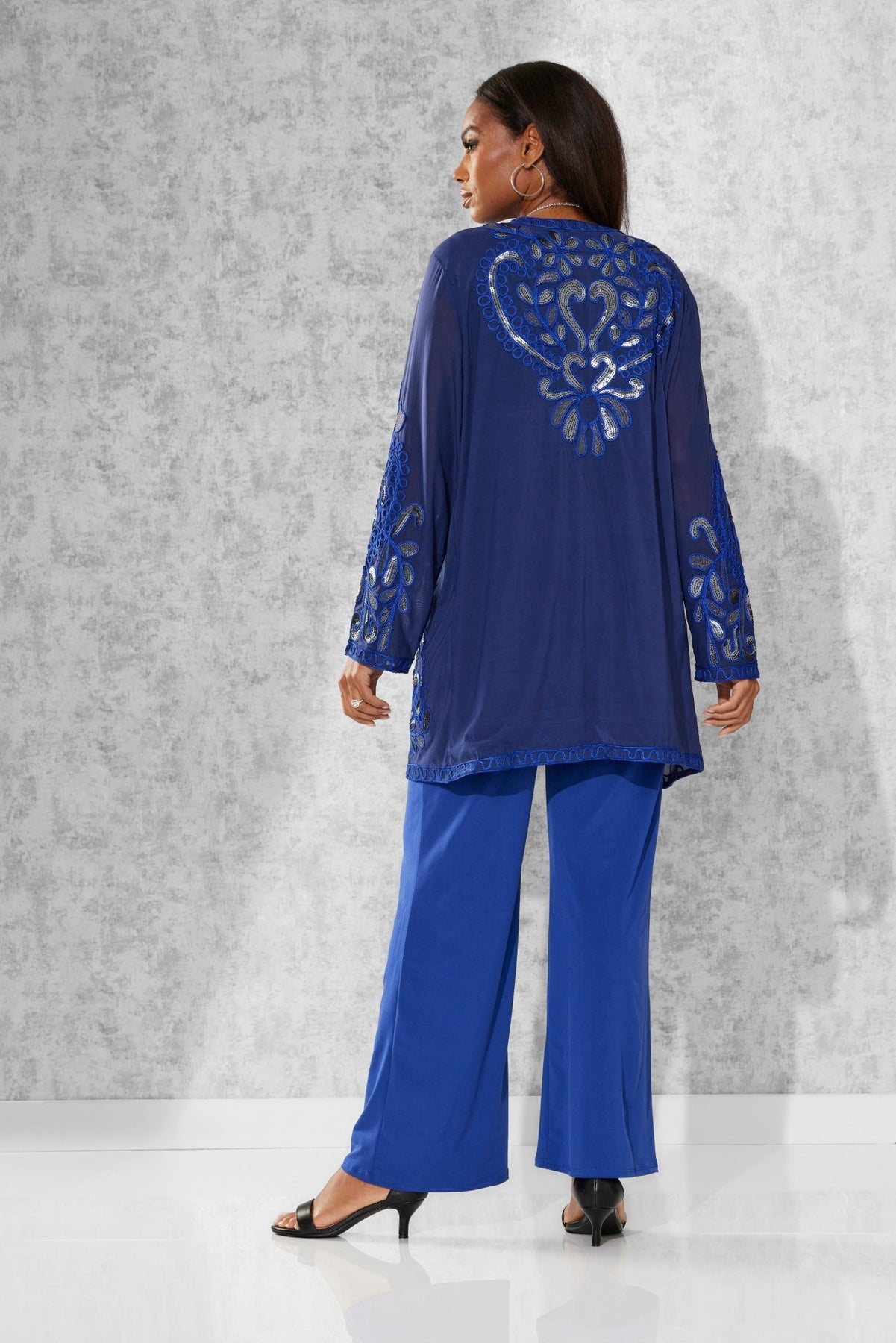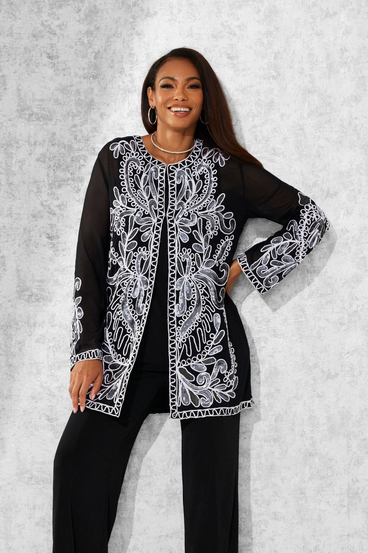 Lasting Impressions Pantset by Studio EY — Unforgettable fashion look embellished to perfection. Jacket: shimmery sequin appliques adorn the front/back and sleeves. Hook-and-eye closures. Full tank. Pant: relaxed-fit wide-leg styling. Especially Yours designer pantsets for ladies are always on-trend. They'll have you looking effortlessly polished and put-together wherever your day takes you. Fashion-forward style checks all the boxes when it comes to high class, sass and sophistication. A must-have in your outfit rotation. So comfortable, you'll reach for it often. Check out our entire collection of Especially Yours pantsets. At EY, we are committed to offering African American women the best in high-quality fashions at affordable prices. Especially Yours clothing offers Black women so many ways to express their beauty, heritage and faith. Love it? Simply click “Add to Cart”.