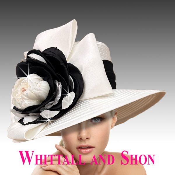 Robin is a true embodiment of understated elegance and timeless style. Its tailored silhouette is achieved through the flat crown ( 5″ high) and crisp geometric brim (4.5″). At the heart of the hat, a dramatic bow holds a luxurious bloom, adding a touch of opulence and soft femininity. This hat is perfect for a wedding, the Derby, or any special occasion. The sweatband is adjustable