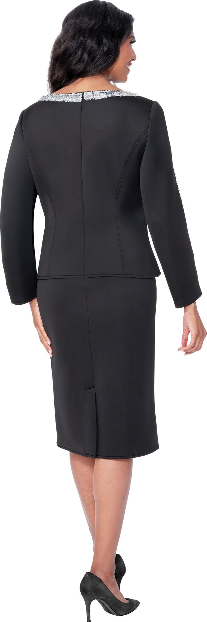 Light Scuba Fabric Skirt Set with Sequin Trimmed Top SL600761