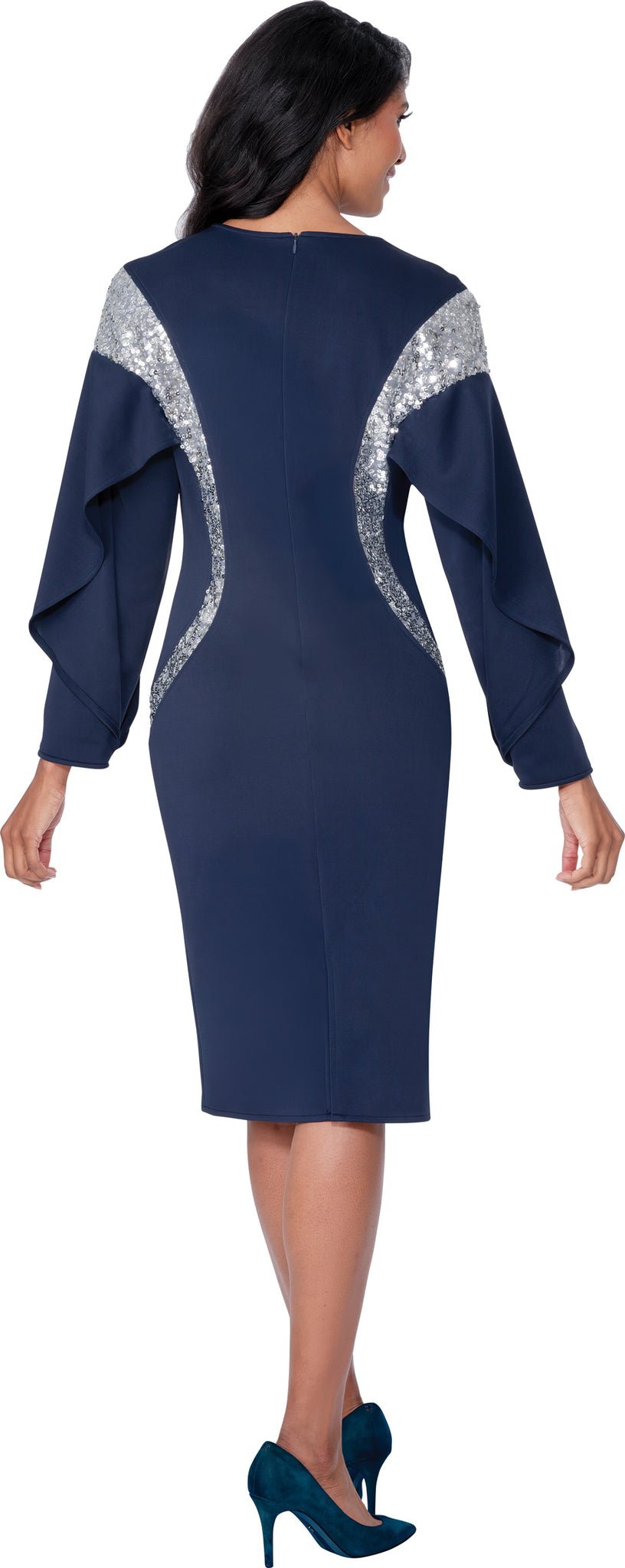 Light Scuba Fabric Dress with Sequin Trim and Rhinestone Brooch SL600771