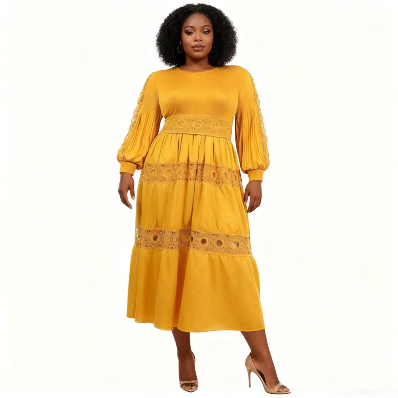 Step into effortless elegance with the Enchanted Meadows Dress. Featuring soft pleating, lace inset detailing, and a flowing tiered skirt, this midi dress offers a flattering silhouette perfect for special occasions, church, celebrations, or elevated everyday wear.