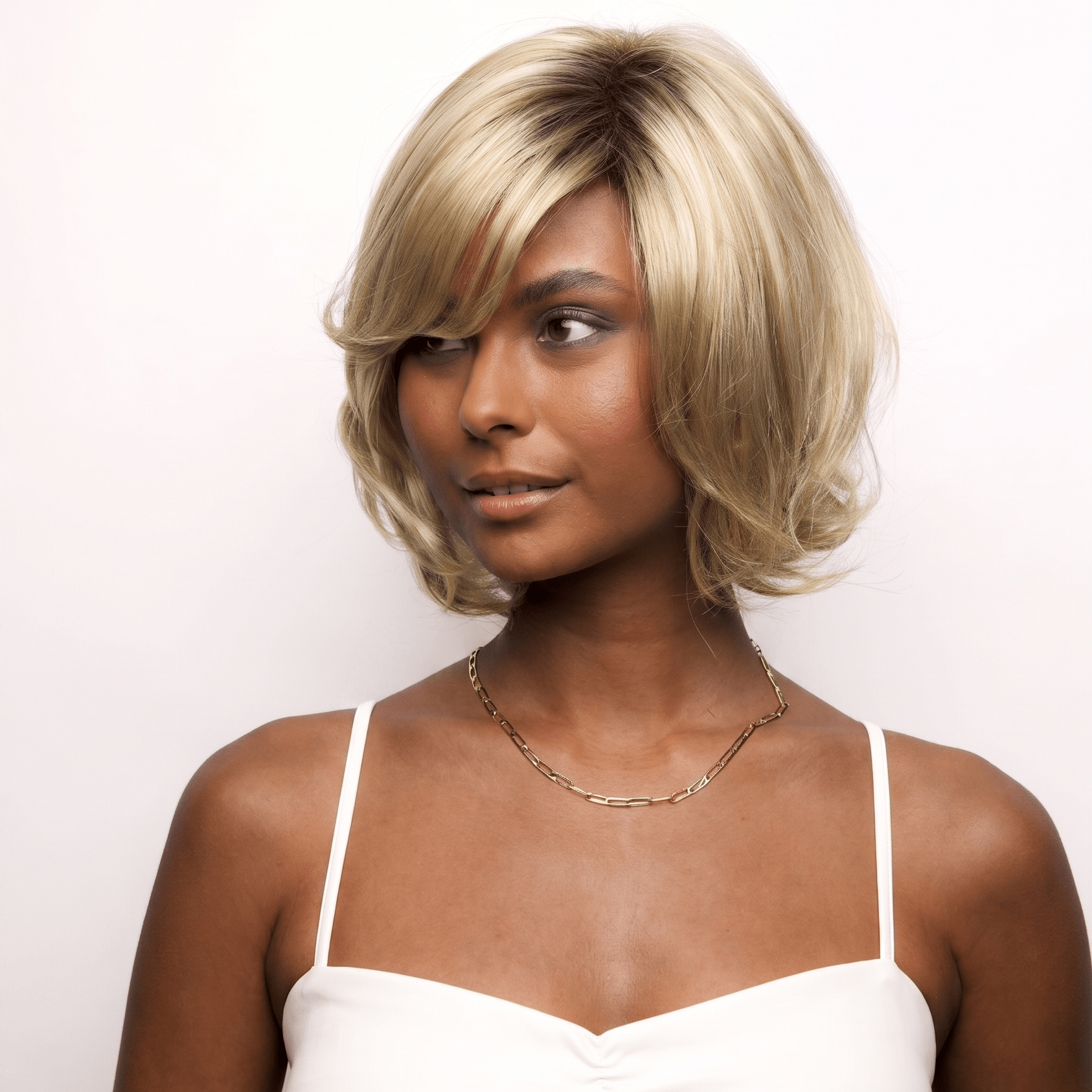 Amal from our Rene of Paris Hi-Fashion Collection is a short-length synthetic wig. This soft curly ready-to-wear wig is a shaggy bob with loose romantic curls and softly layered fringe. Amal is machine made with adjustable tabs in the back nape area to allow a more comfortable fit. The result is a comfortable fit with a natural look that is both fashionable and easy to wear.