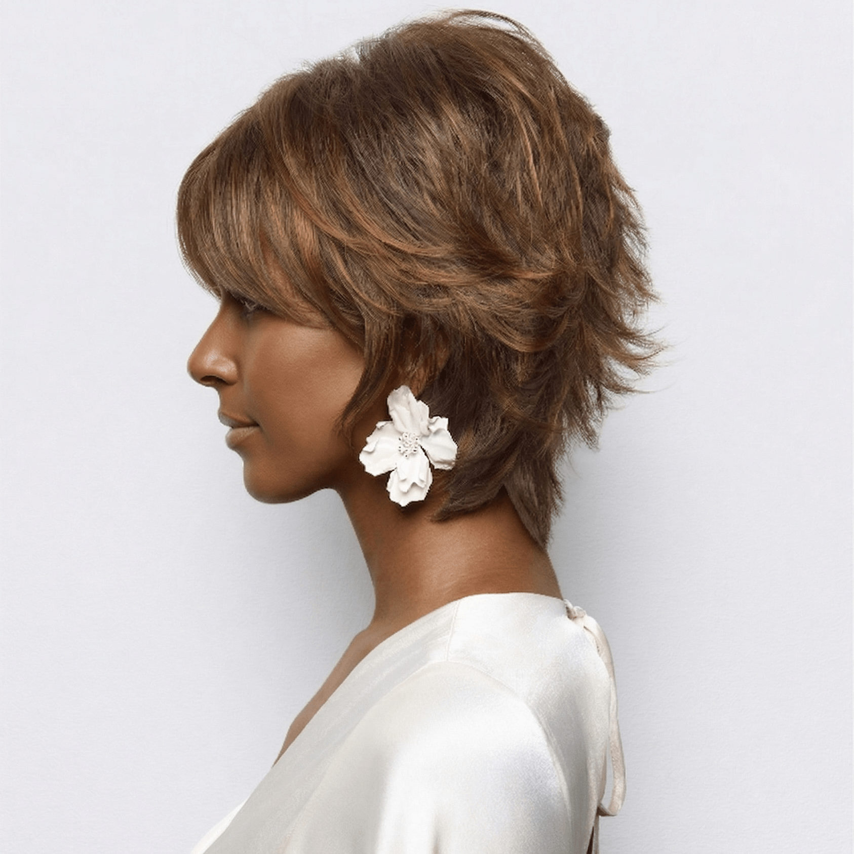 Sky from our Noriko Collection is a short-length synthetic wig. This straight ready-to-wear wig is one of our popular style and best seller from the Noriko Collection. Sky is our flattering bob style with feathered layers and wispy ends. The thinned fringe to the razored wispy ends and voluminous bob style is the reason why it’s one of our top seller. Sky is machine made with adjustable tabs in the back nape area to allow a more comfortable fit. The result is a comfortable fit with a natural look that is both fashionable and easy to wear. Sky is also available in Partial Monofilament and Large Cap.