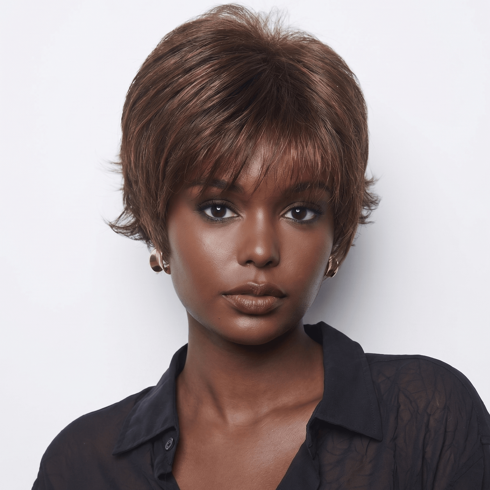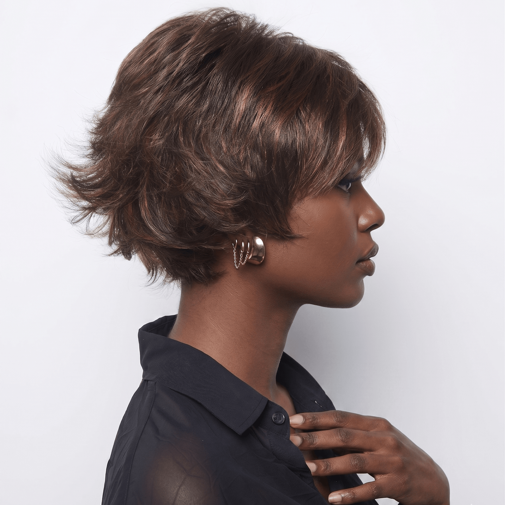 Tyler from our Rene of Paris Hi-Fashion Collection is a short-length synthetic wig. This straight ready-to-wear wig is a sophisticated style combined with tapered layers and flipped ends. Tyler is machine made with adjustable tabs in the back nape area to allow a more comfortable fit. The result is a comfortable fit with a natural look that is both fashionable and easy to wear.