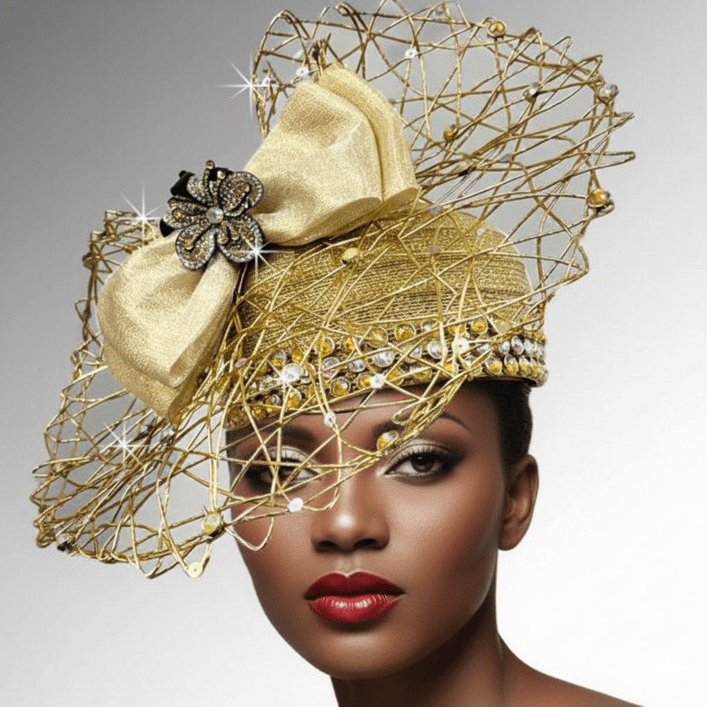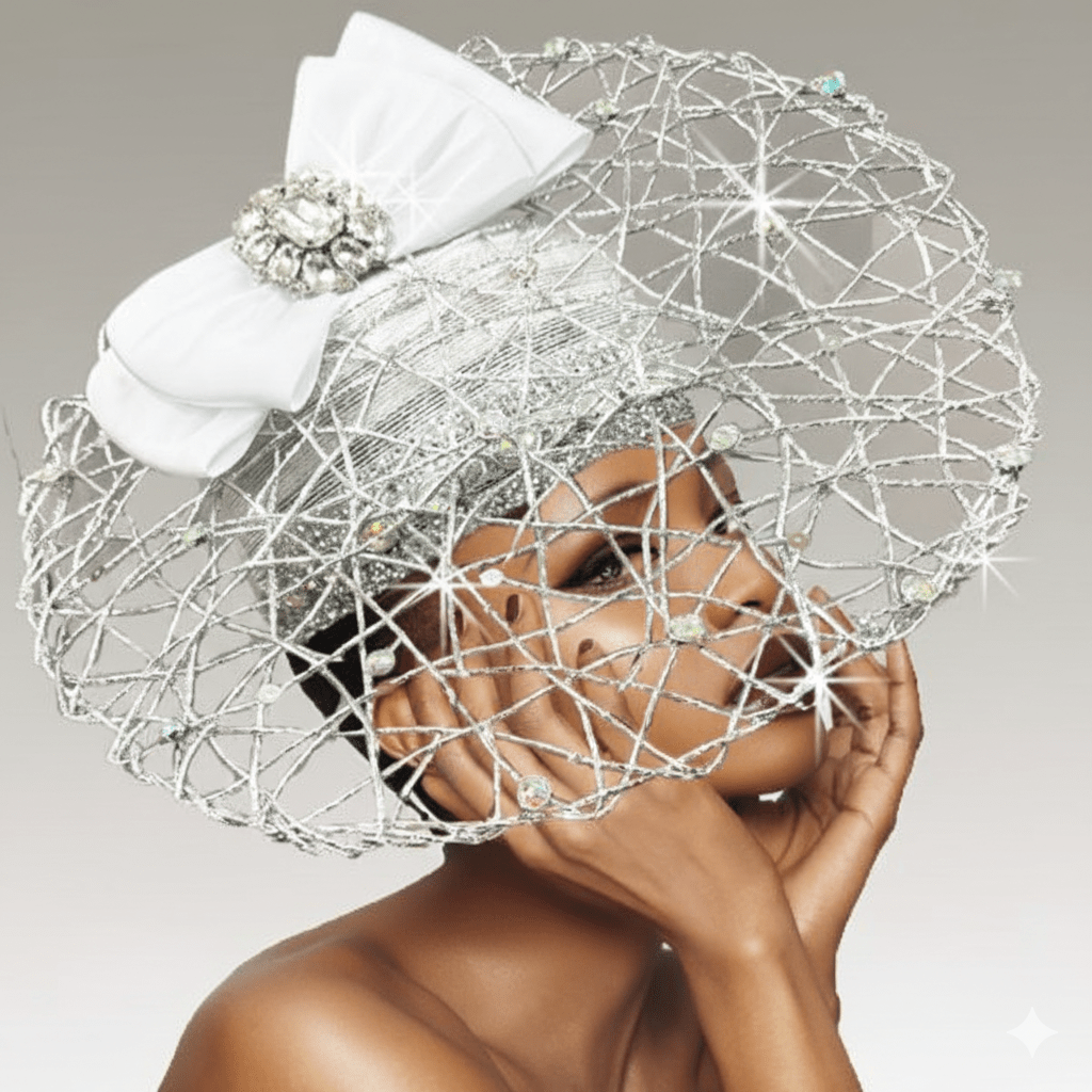 Bessie is a soulful homage to the legendary Empress of the Blues, Bessie Smith. This captivating bubble hat is cloaked in shimmering foil raindrops, evoking the depth, mood, and power of her voice. A luxurious hand-woven metallic pinwheel draws the eye with intention. Nestled within it is a bow adorned with a brilliant, multi-pronged crystal star. The adjustable sweatband assures the most secure and comfortable fit.
