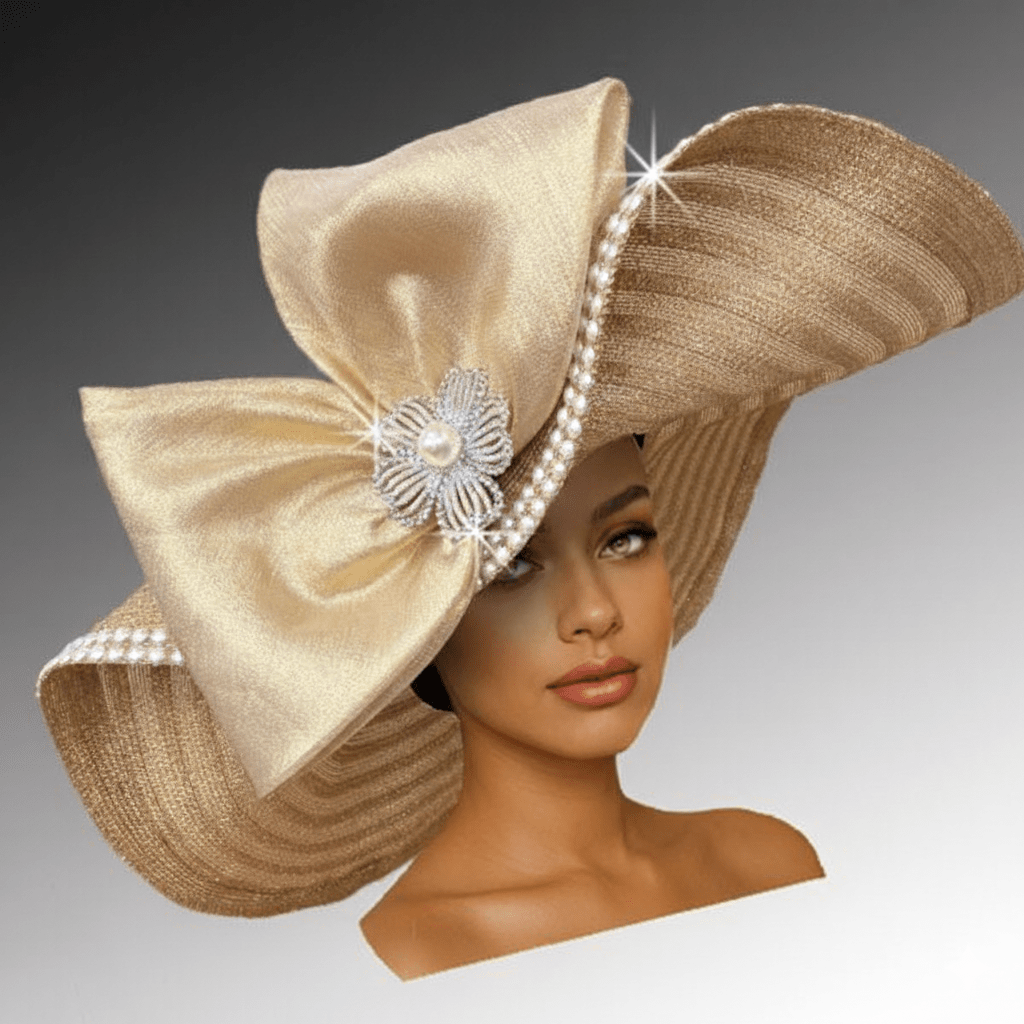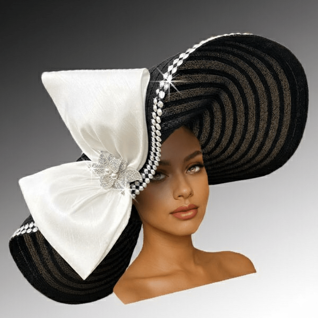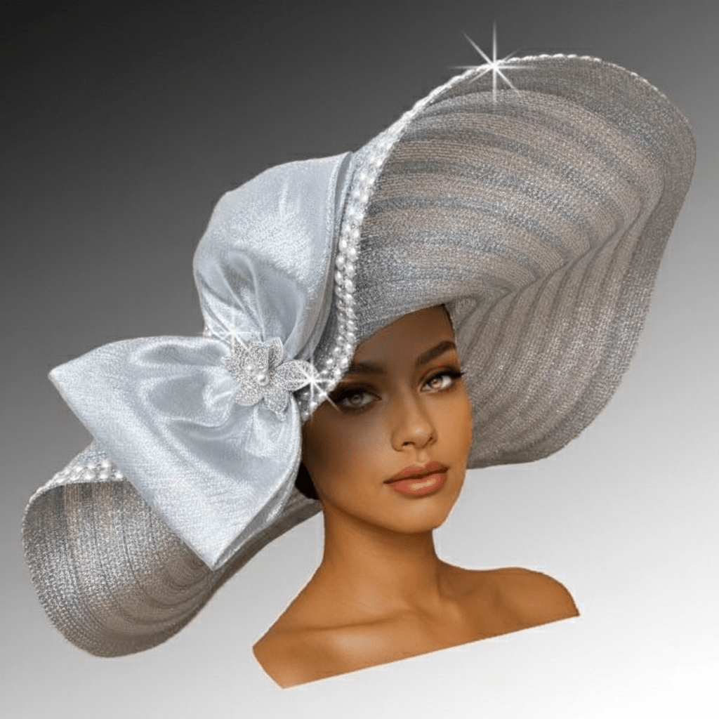 The Captiva hat features a generous 8-inch brim and a perfectly rounded crown, this statement headpiece exudes timeless sophistication and modern drama in equal measure. The entire crown and brim’s edge are blanketed in luminous pearls. Expertly manipulated to frame, the brim’s fluid contour enhances the wearer’s features. A bow and crystal bloom complete the design. The adjustable sweat band assures a secure fit.
