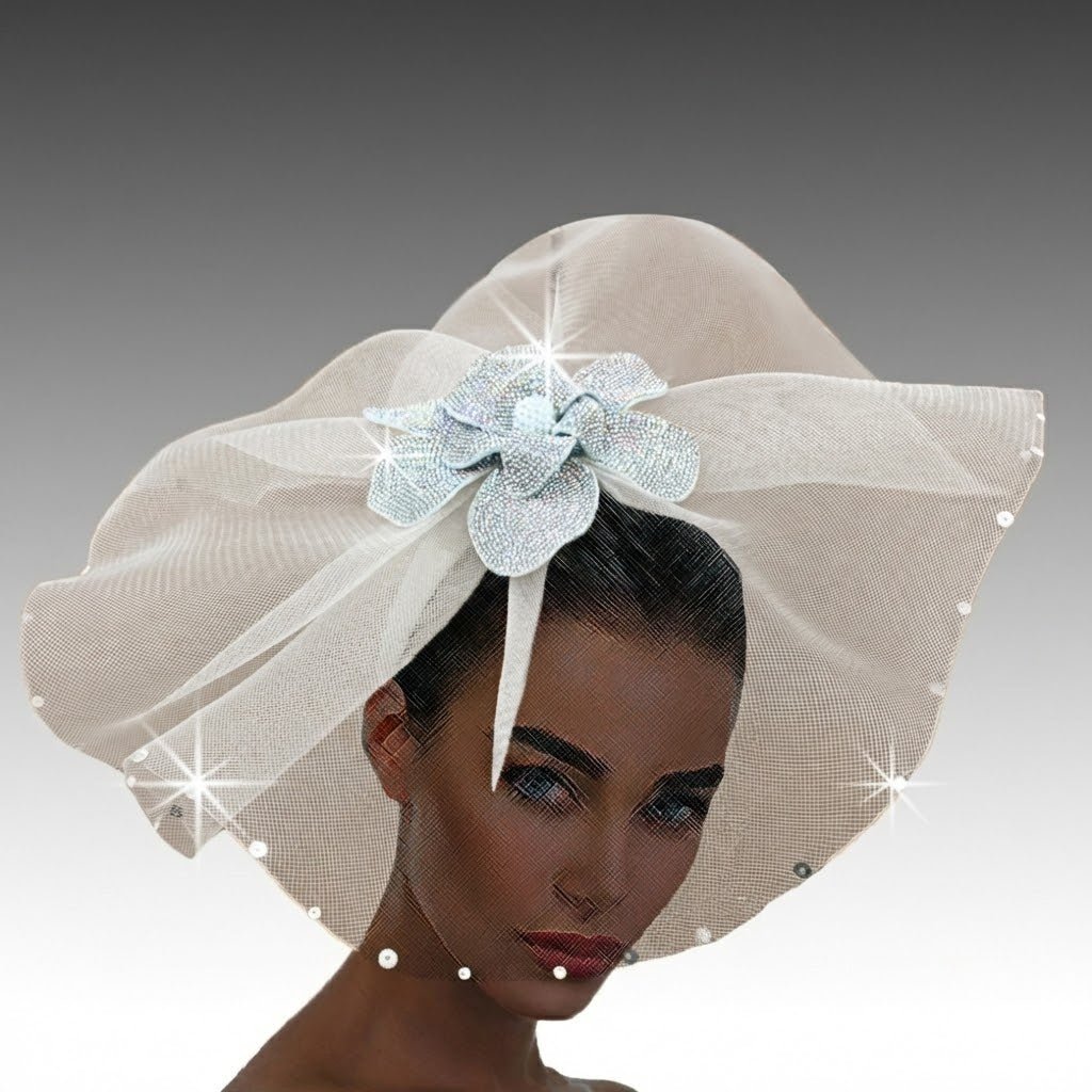 The Deena fascinator is a tribute to a strong woman whose strength shines through a simple and elegant accessory. An illusion mesh pinwheel sits coquettishly on a headband and features a meticulously inlaid crystal flower. The sparkling crystal flower measures approximately 5″ in diameter. Framing the entire pinwheel are hand applied tonal sequins that capture light with every movement.