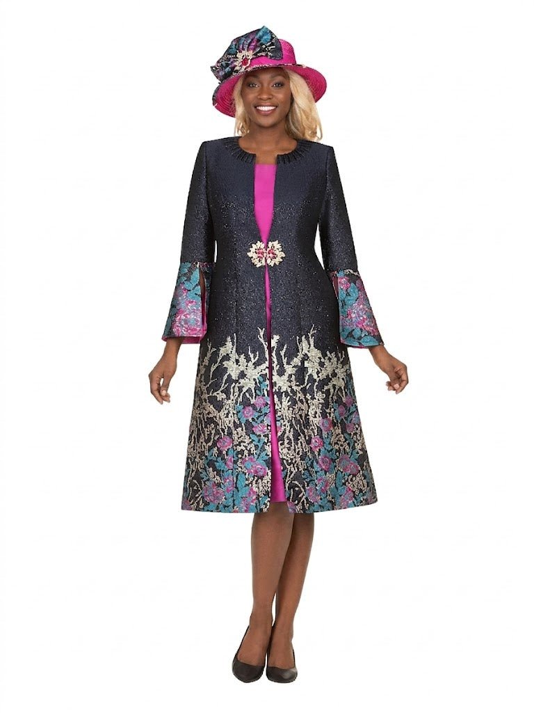 - Make every entrance unforgettable in this breathtaking 2-piece navy and fuchsia jacket dress ensemble, designed for women who embody grace, leadership, and undeniable sophistication. From pulpit to gala, anniversary celebration to special presentation—this look speaks with authority and beauty.