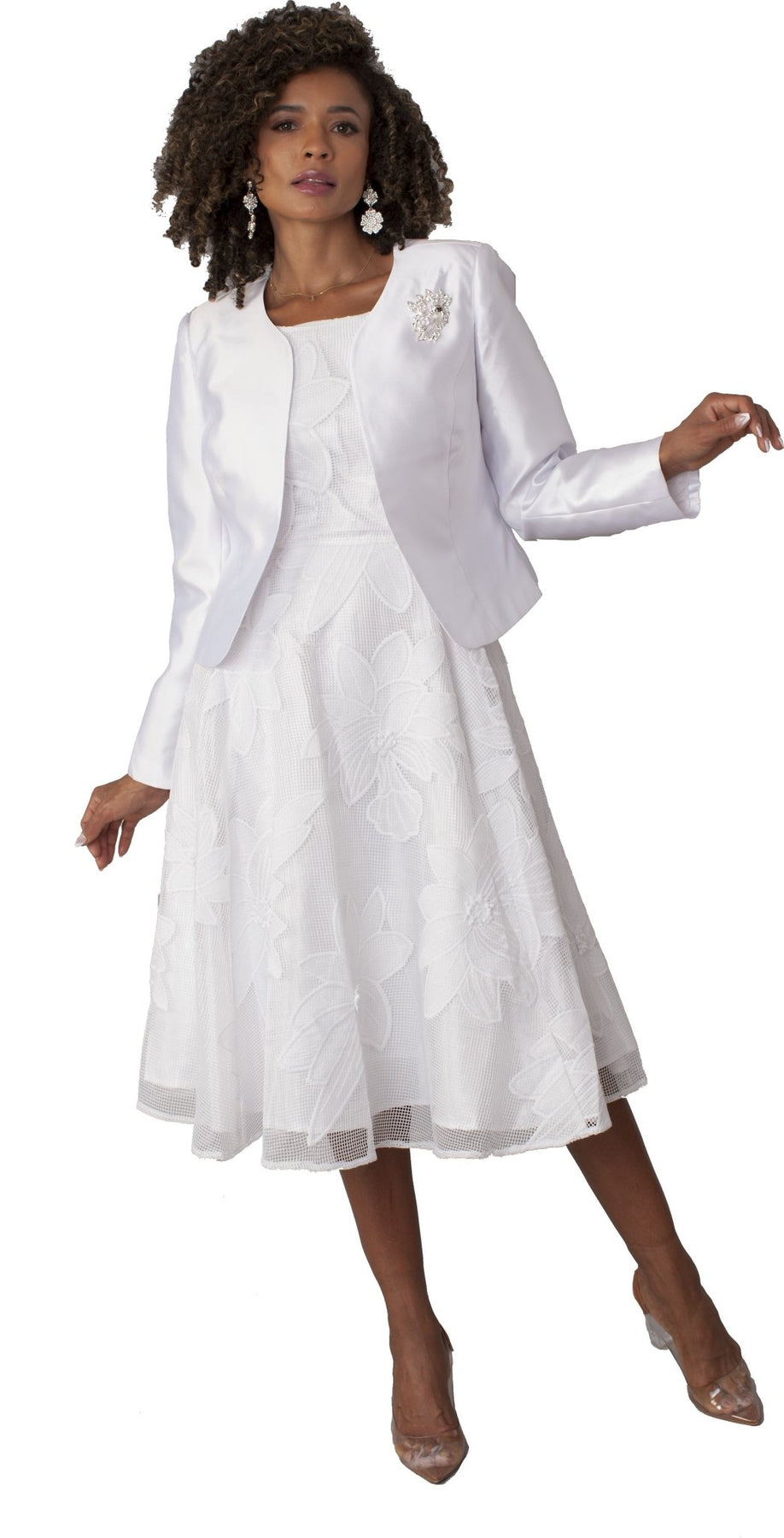 Plus Size Elegant 2 - Piece Church Dress with Floral Lace and Jewel Brooch - 4806W - Especially Yours