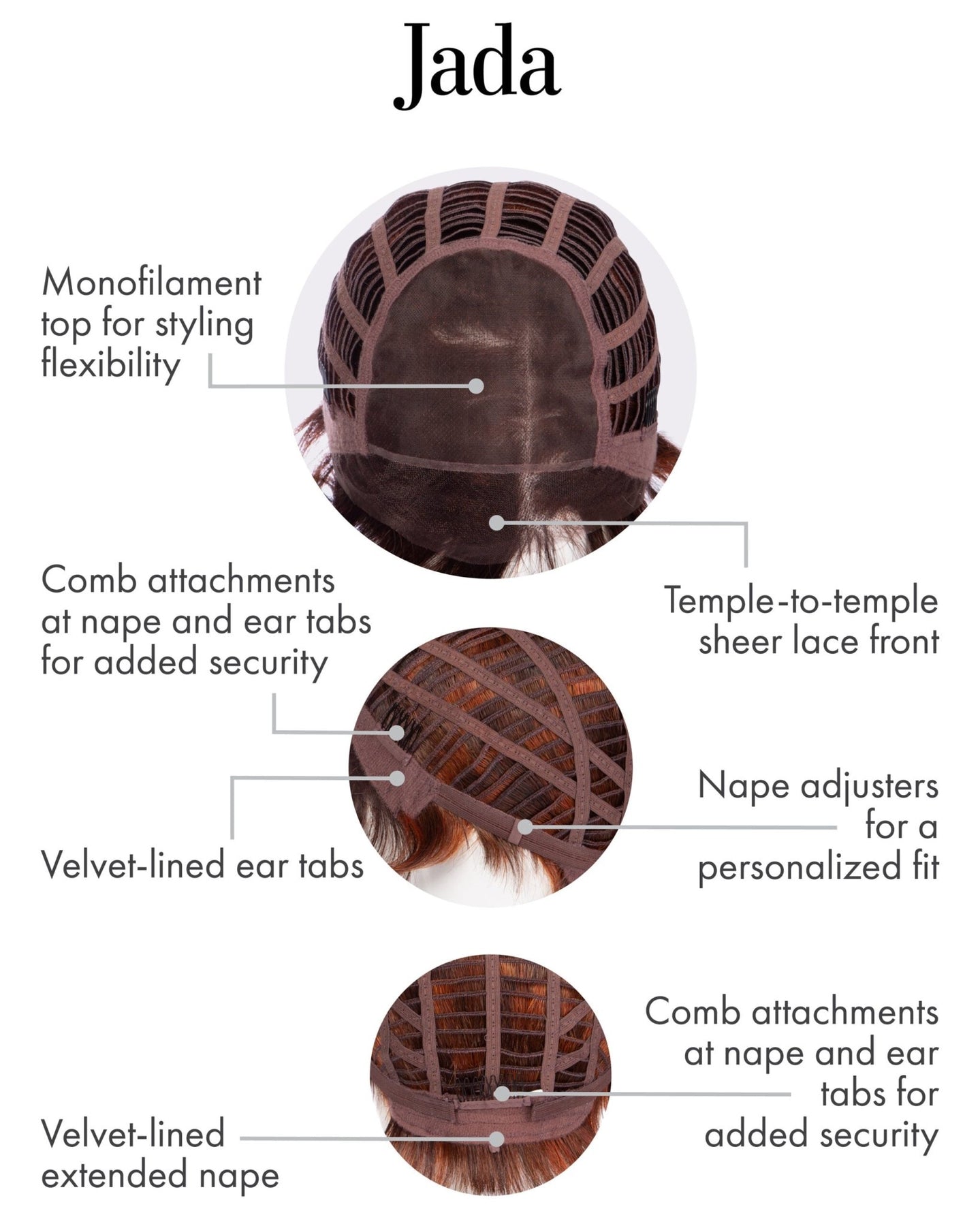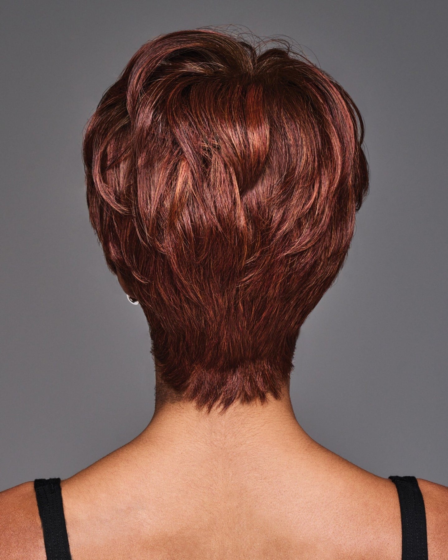 Lights, camera, action! JADA brings all the seductive style of a brazen Bond girl to this sexy boycut. She’s a short, wavy crop with a longer front and a monofilament top for sweeping movement that can be brushed forward or with a sophisticated side part.
