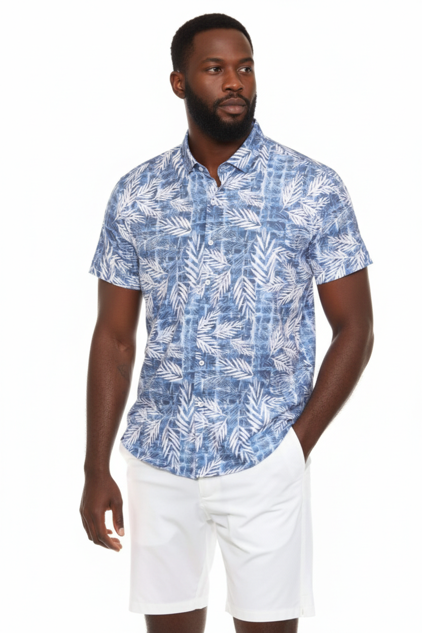 Bold and breathable, this short sleeve shirt features a leafy print on soft textured stretch fabric for next-level comfort and style. Whether you're heading out for a summer hangout or beachside dinner, this shirt brings sharp, modern energy to any laid-back look.
