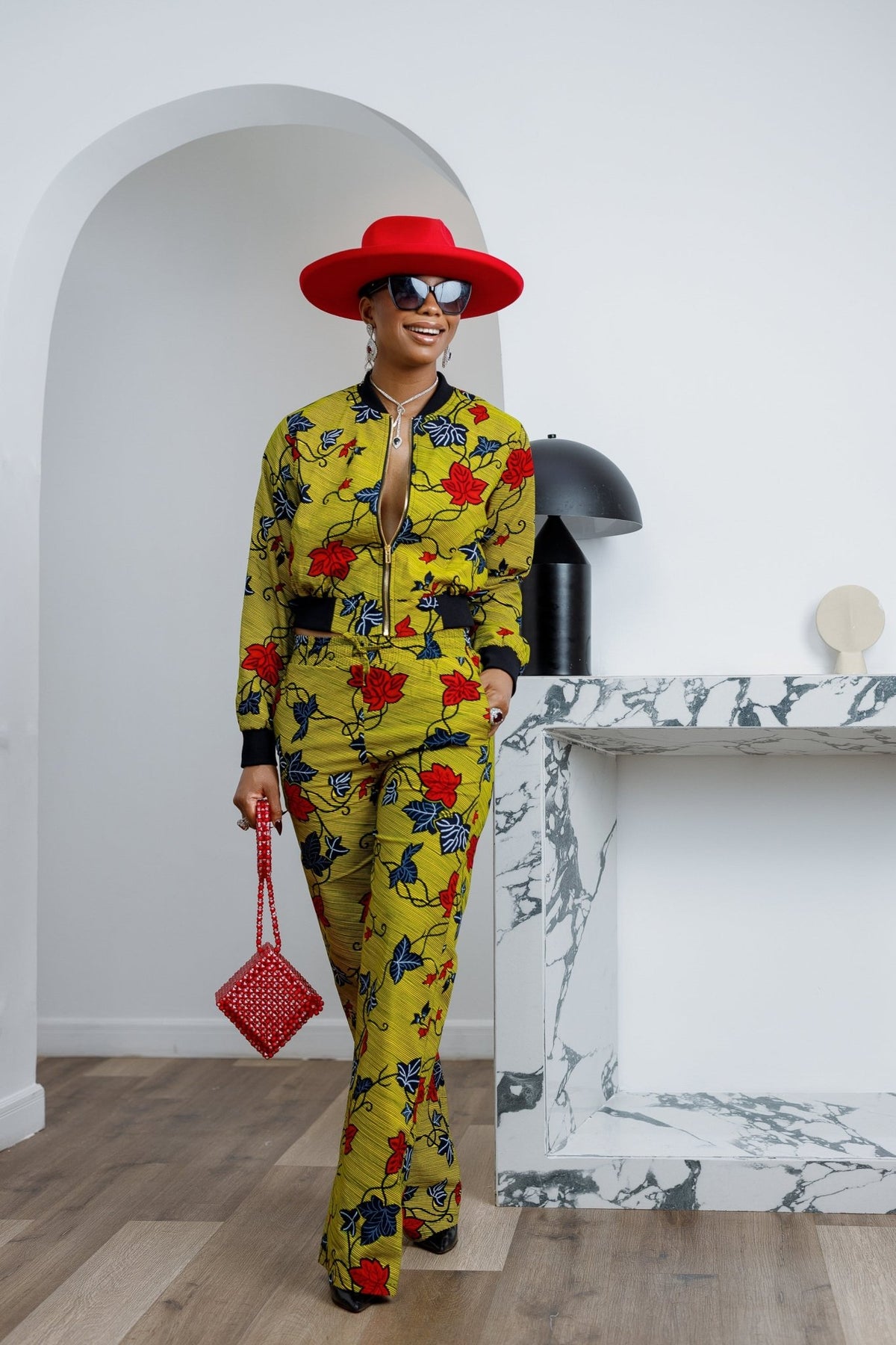 Queen, this set was made for you to stand tall and shine. The rich African print celebrates our culture, while the bomber jacket and matching high-waist pants bring that modern, bossed up edge. It’s bold, unapologetic, and full of confidence,  just like you.