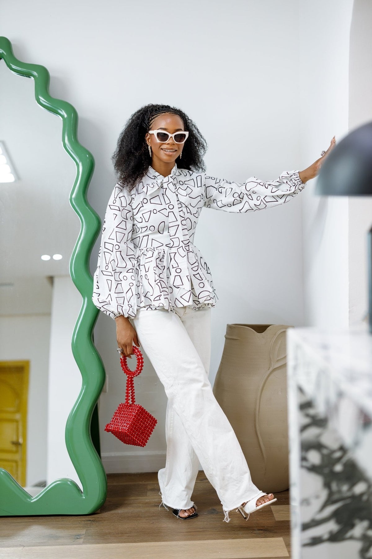 Bring bold elegance to your wardrobe with our African Print Tie-Neck Peplum Top, designed to make you feel every bit the Queen you are. Crafted from premium African wax cotton, this vibrant top features a flattering peplum silhouette, dramatic puff sleeves with elastic cuffs, and a stylish tie-neck bow that adds a sophisticated, feminine touch.