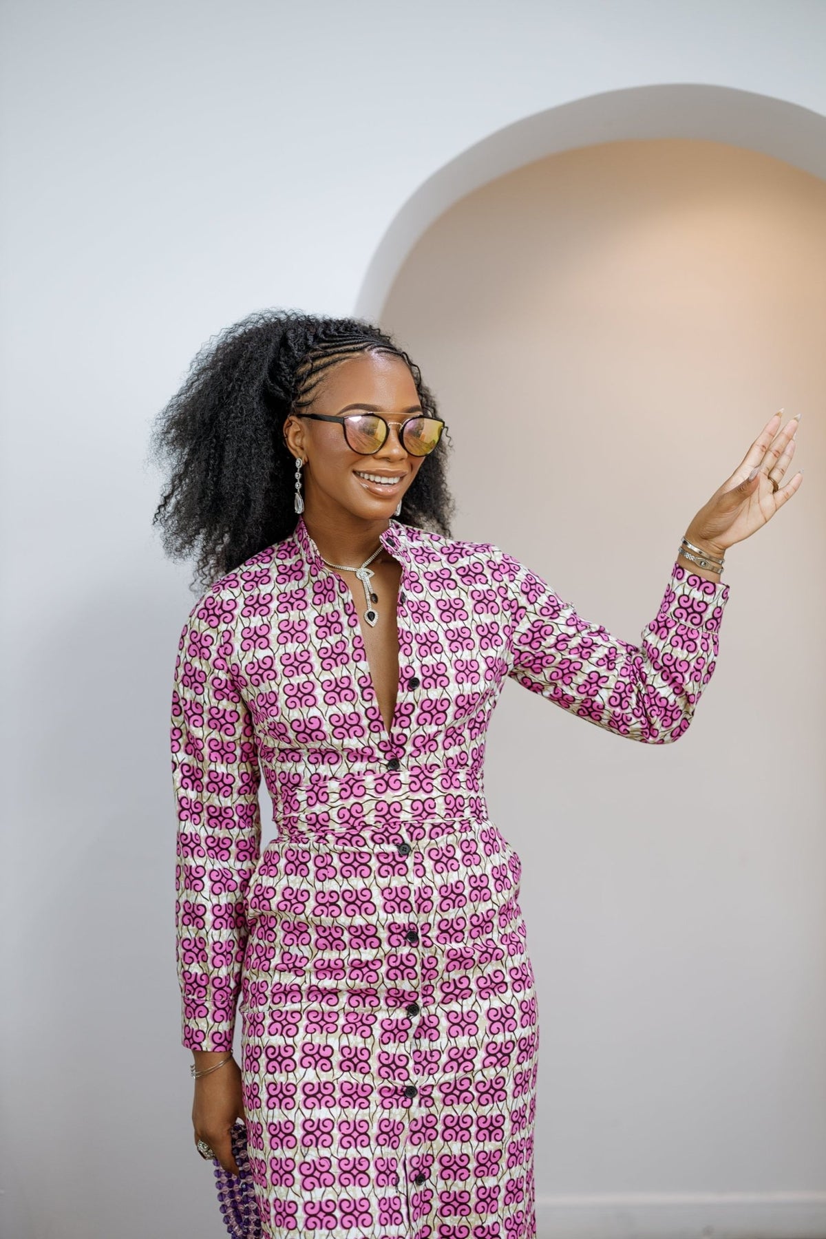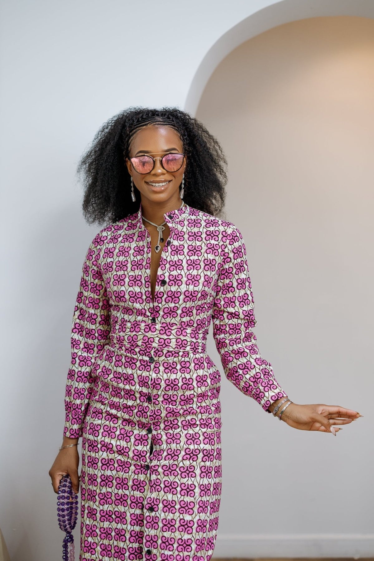 This is that grown woman dress. The one that makes you feel put together, powerful, and undeniably feminine. Designed with a sleek standing collar, long sleeves, and a flattering button-down front, this African Print Maxi Dress gives you elegance without the effort.
