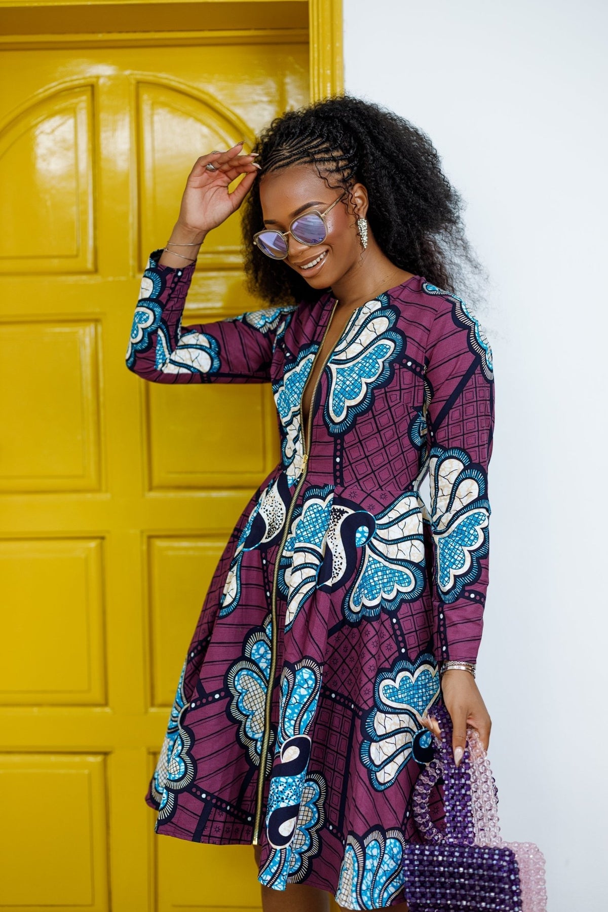 KEITA AFRICAN PRINT ZIP FRONT FLARE DRESS [PURPLE]