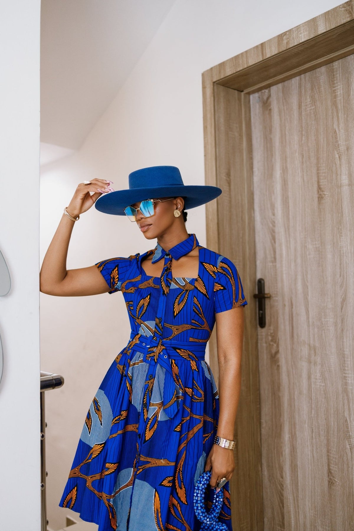 Crafted from vibrant African wax print, it’s versatile enough for work, brunch, or a stylish stroll.