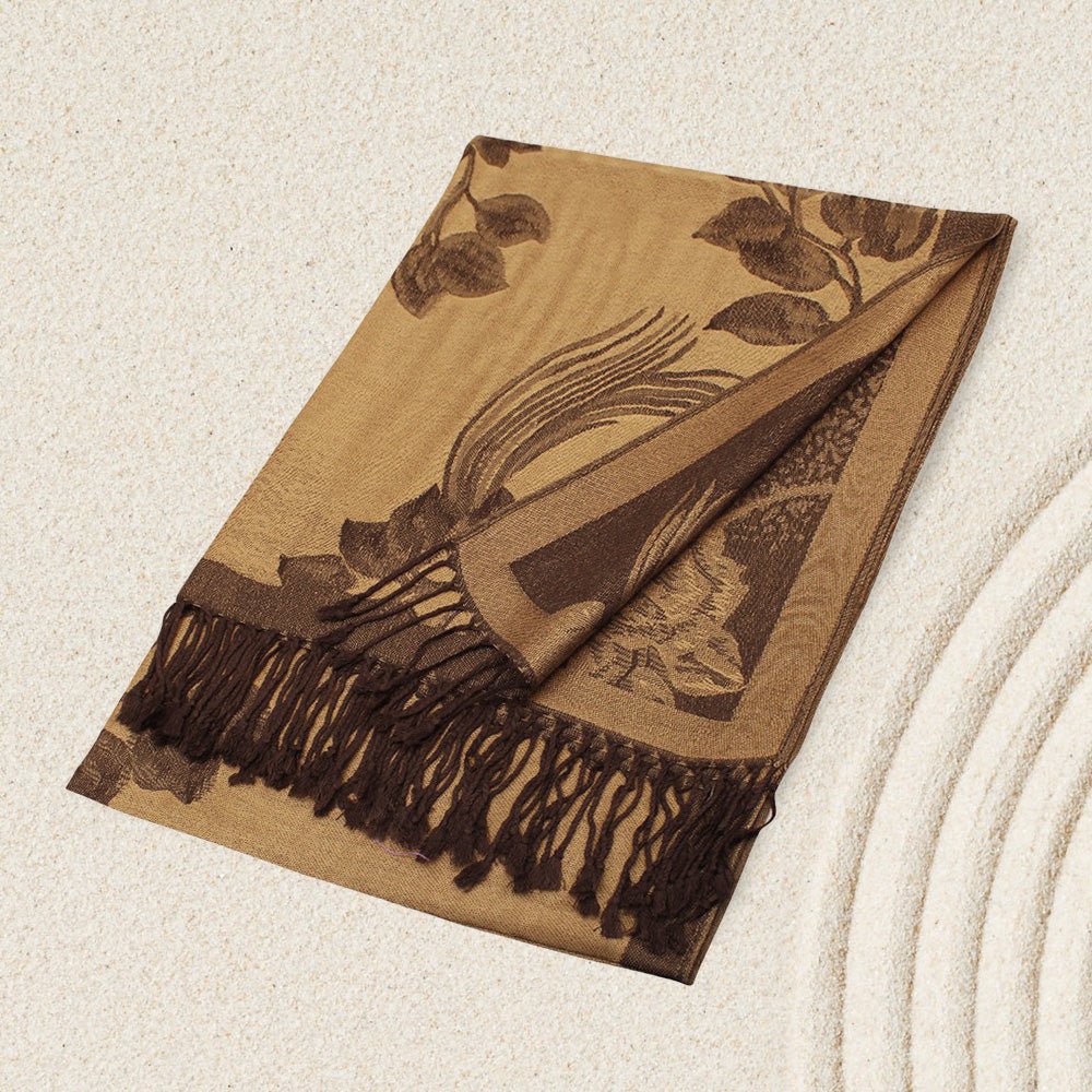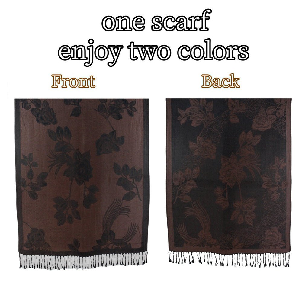 • Reversible floral wrap scarf designed with two distinct sides for versatile styling. One scarf offers dual looks, finished with elegant fringe for added movement. Easy to style as a shawl, wrap, or neck scarf for everyday wear, travel outfits, and effortless gifting.