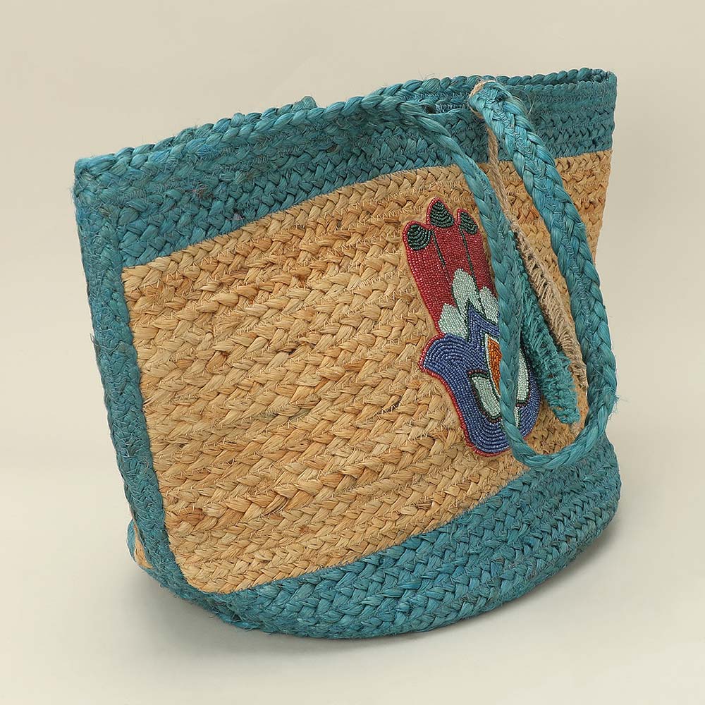 • Statement woven tote bag designed with an embroidered hand-inspired motif and decorative tassel accent for a unique, eye-catching look. Spacious interior comfortably holds daily essentials, making it ideal for shopping, travel, or casual outings. A lightweight, standout accessory perfect for boutiques seeking artistic, trend-forward tote bags.