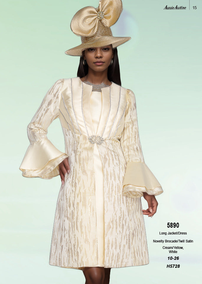 Brocade Jacket Dress & Dress Set with Bell Sleeves- 4852