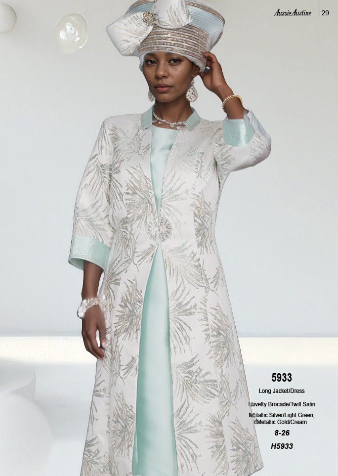Elegant Two-Piece Brocade Dress & Jacket Set- 4853