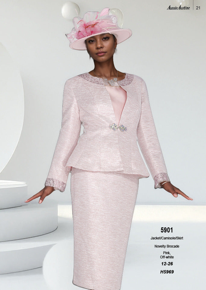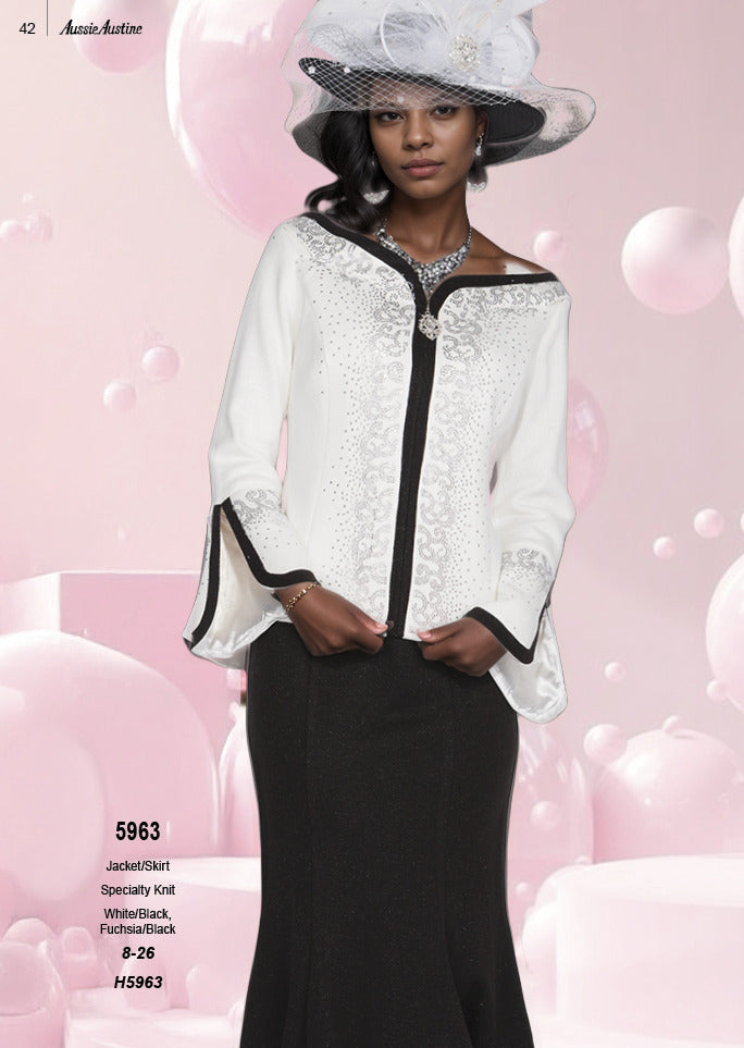Three Piece Skirt Suit with Rhinestone Detail -4996
