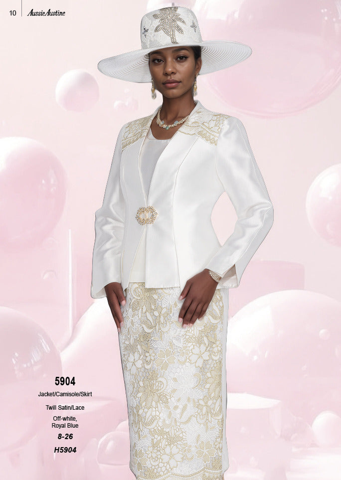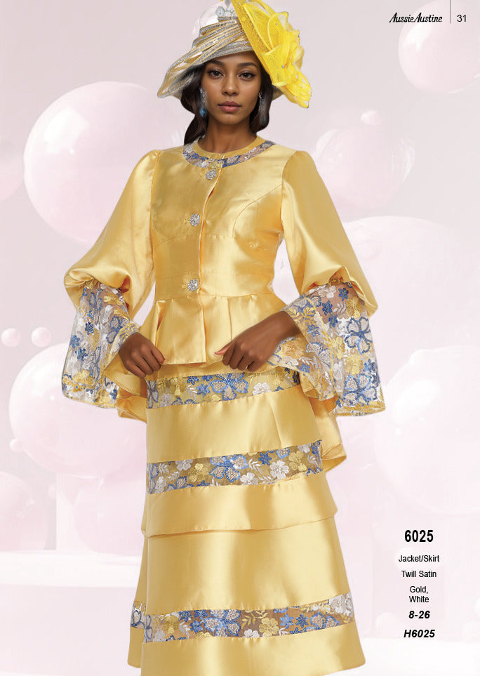 Elite Champagne 6157 Gold Three-Piece Skirt Suit with Lace Brocade and Rhinestone Cami