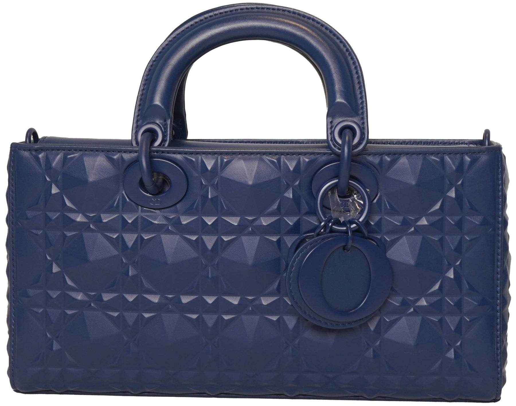 This is an authentic CHRISTIAN DIOR Lambskin Cannage Medium Lady D-Joy in Black. This tote is crafted of black lambskin leather with a quilted geometric pattern. The bag features two removable leather and chain shoulder straps, top handles, and gold tone hardware, including Dior letter charms. The opens to a black microfiber interior with a patch pocket.