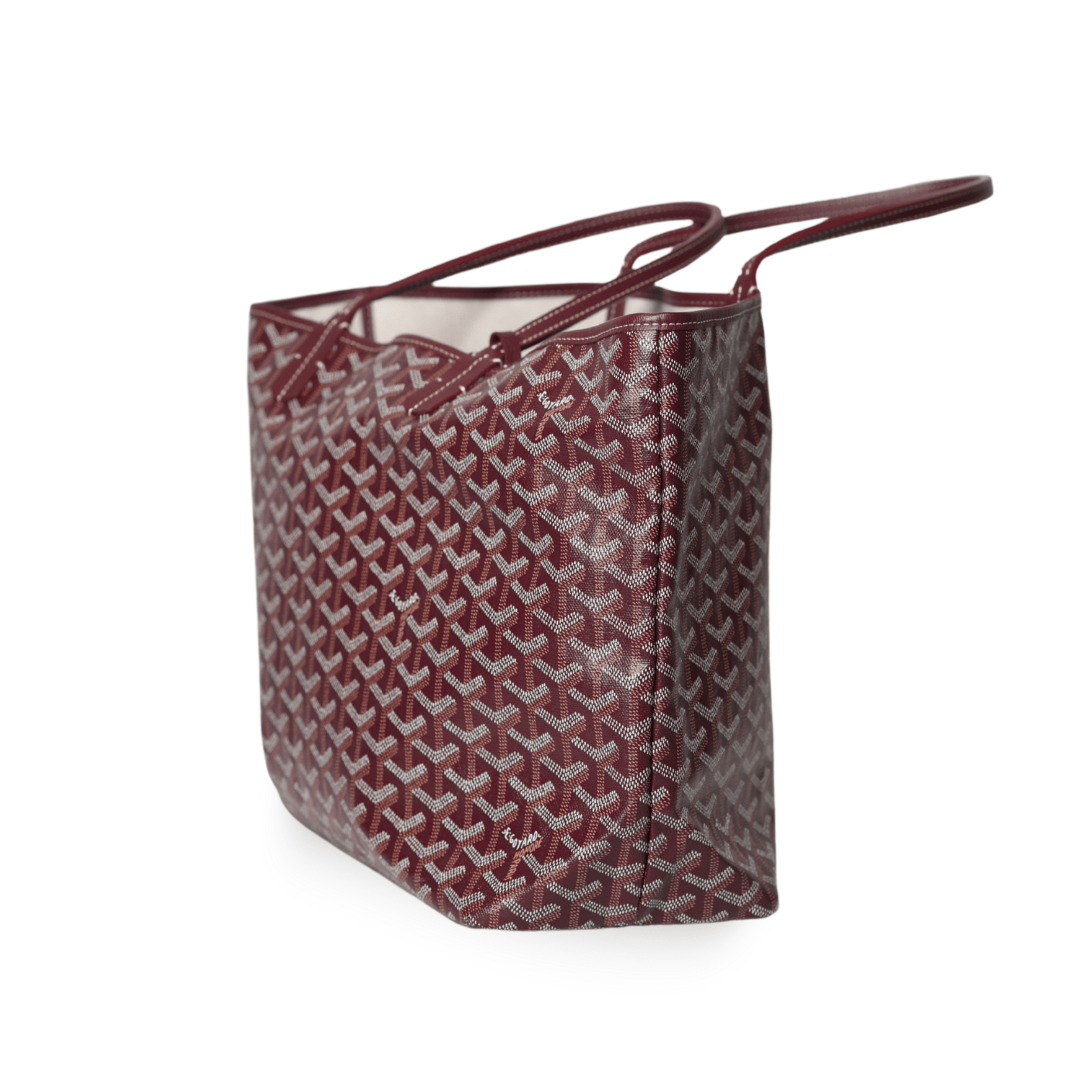 This authentic, pre-owned Goyard Saint Louis GM is crafted in the brand’s signature hand-painted Chevron Goyardine canvas in burgundy with matching leather trim. Lightweight and generously sized, this open-top tote includes a detachable interior pouch for added organization. A favorite for everyday carry or travel, it blends iconic craftsmanship with effortless style.