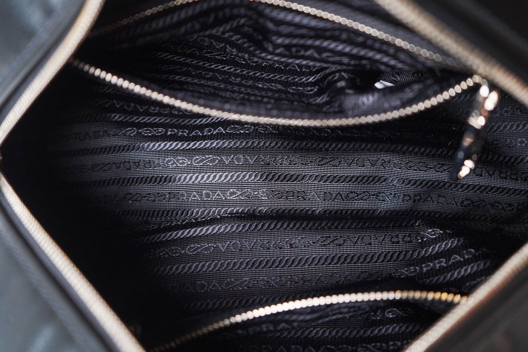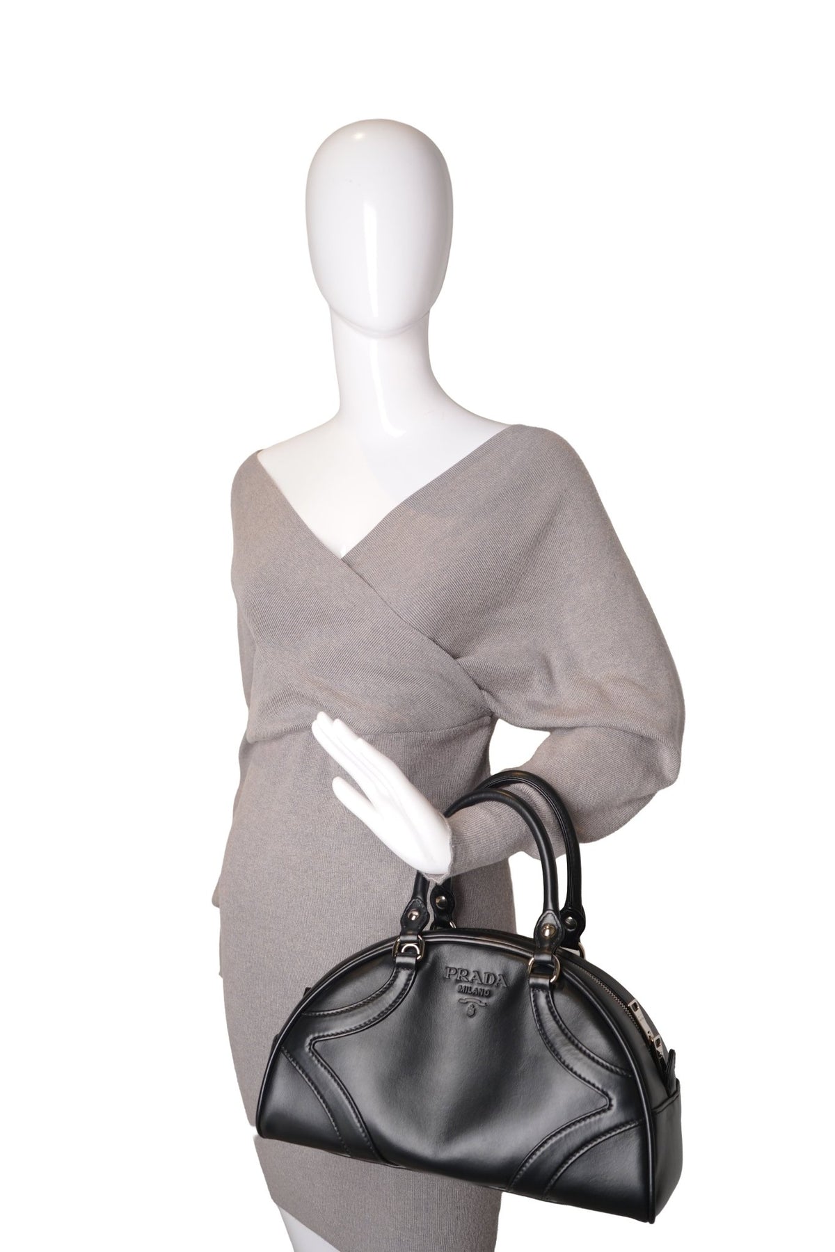 • Features: Structured dome silhouette, Prada Milano logo, rolled leather handles