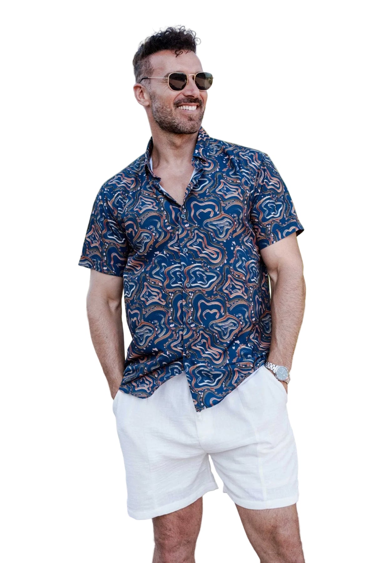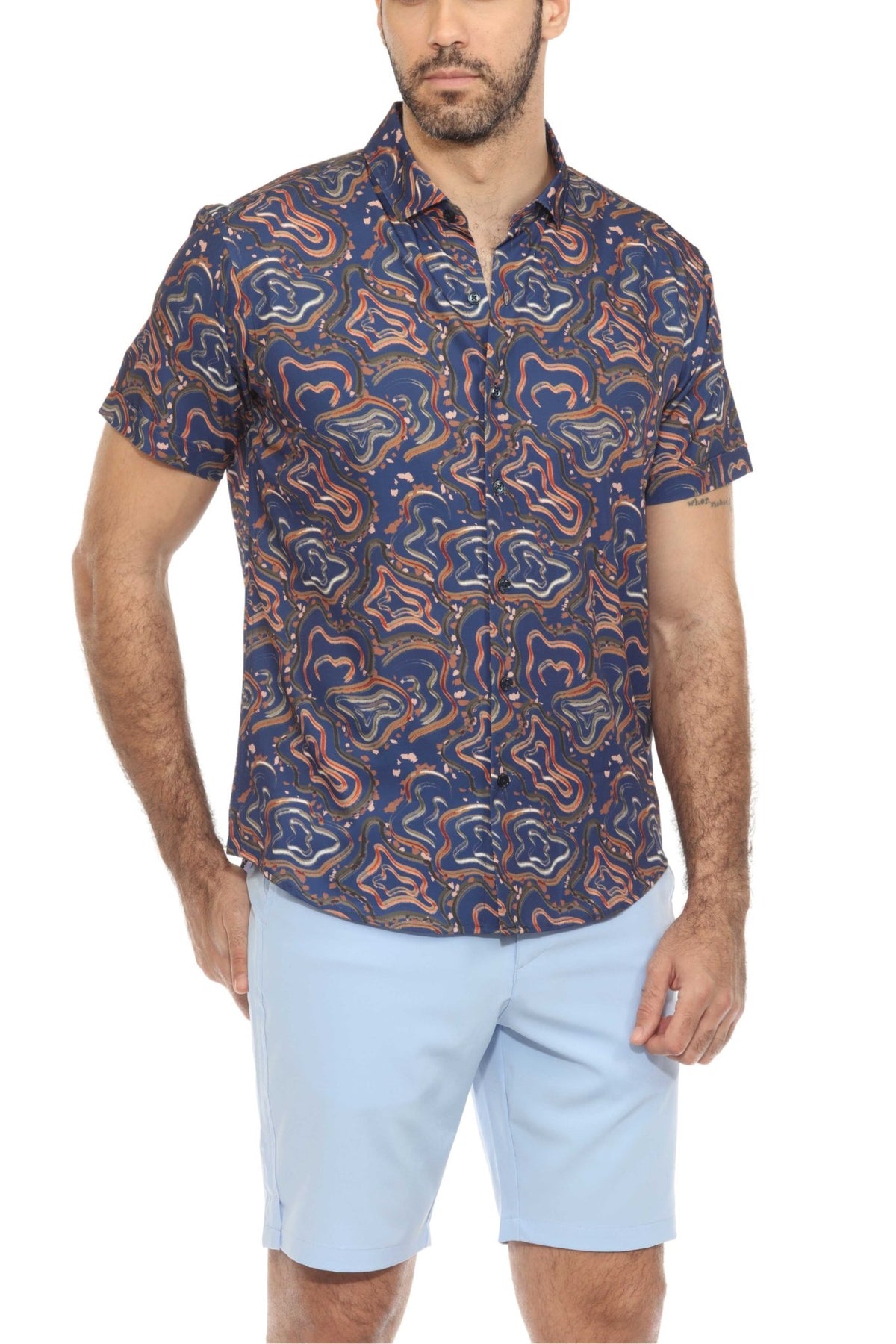 Bold and breathable, this short sleeve shirt features a multi color abstract print on soft textured stretch fabric for next-level comfort and style. Whether you're heading out for a summer hangout or beachside dinner, this shirt brings sharp, modern energy to any laid-back look.