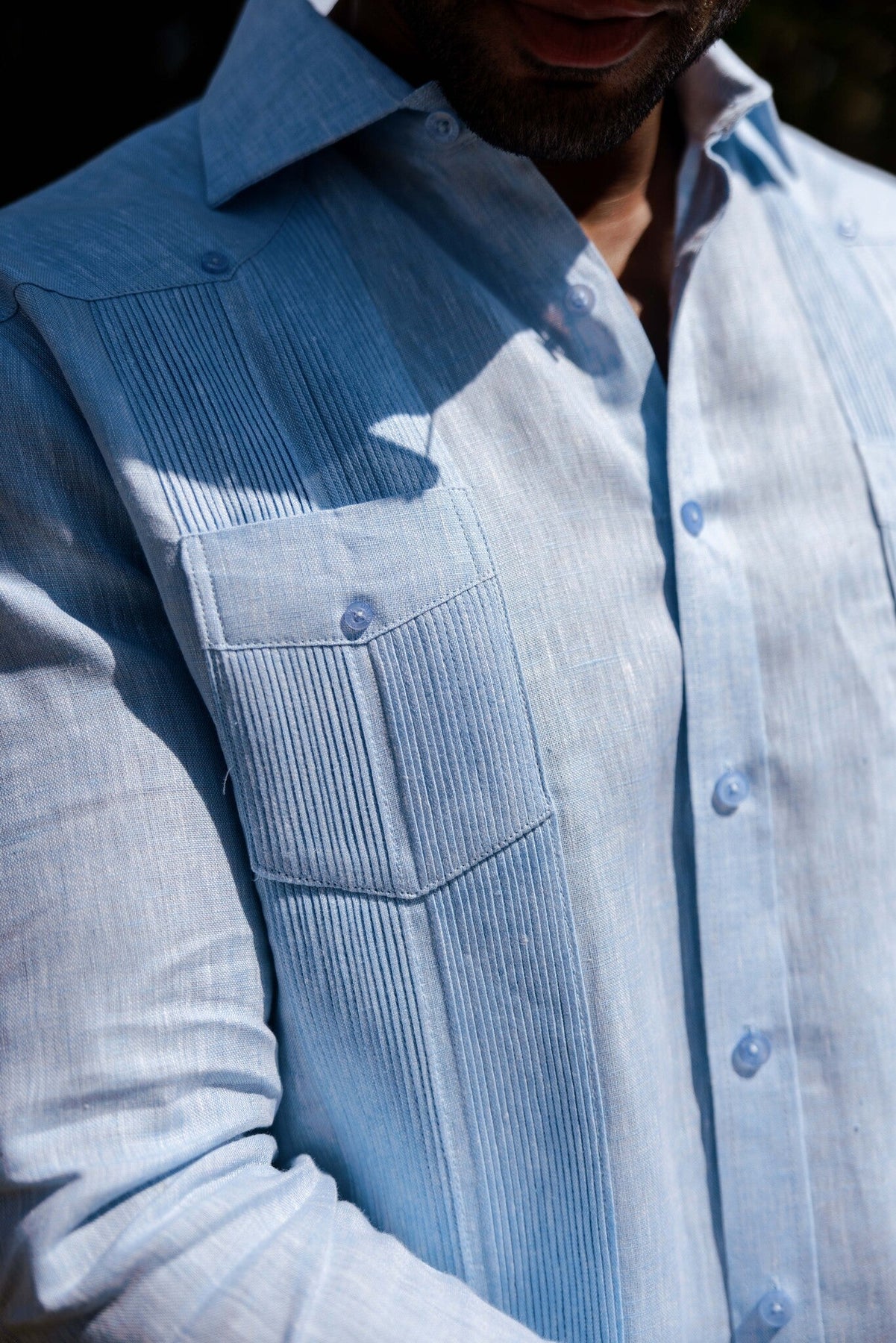 Men's 100% Linen Two - Pocket Design Guayabera Shirt Long Sleeve - Especially Yours