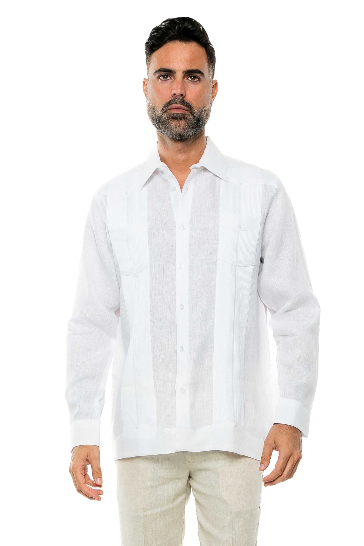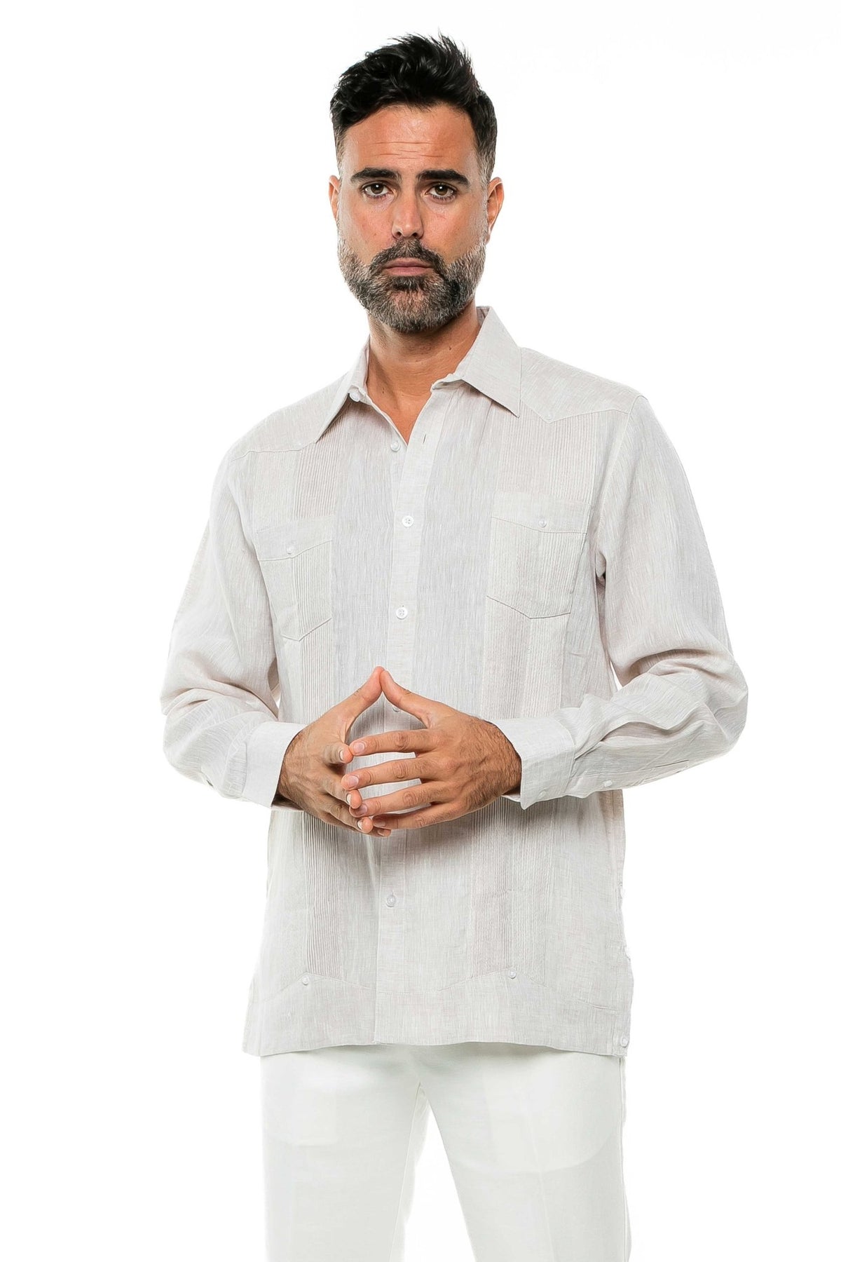 Men's 100% Linen Two-Pocket Design Guayabera Shirt Long Sleeve