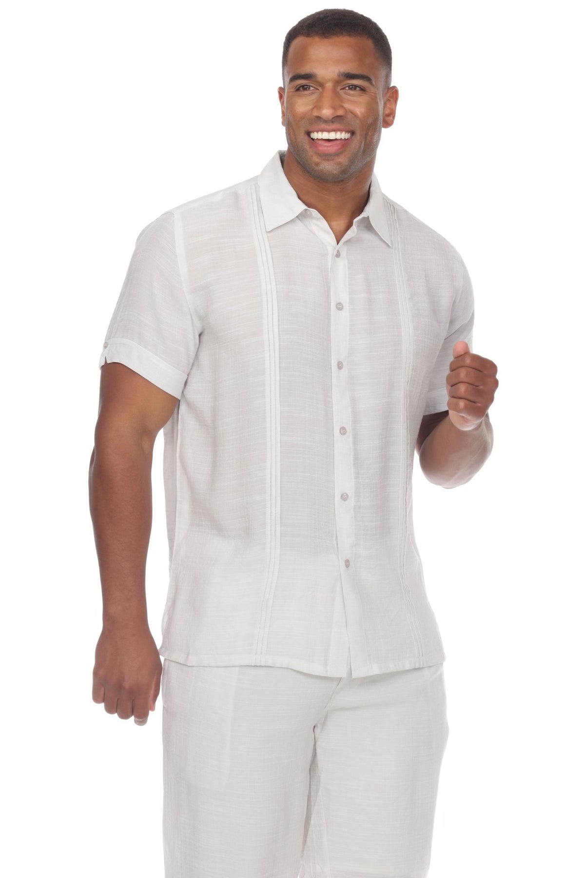 Men's Button Down Beachwear Short Sleeve Shirt with Pleating Design