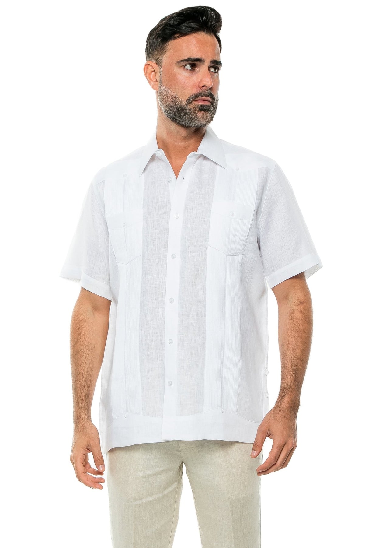 • Timeless Guayabera Detailing, traditional pleats with short sleeves for warmer days