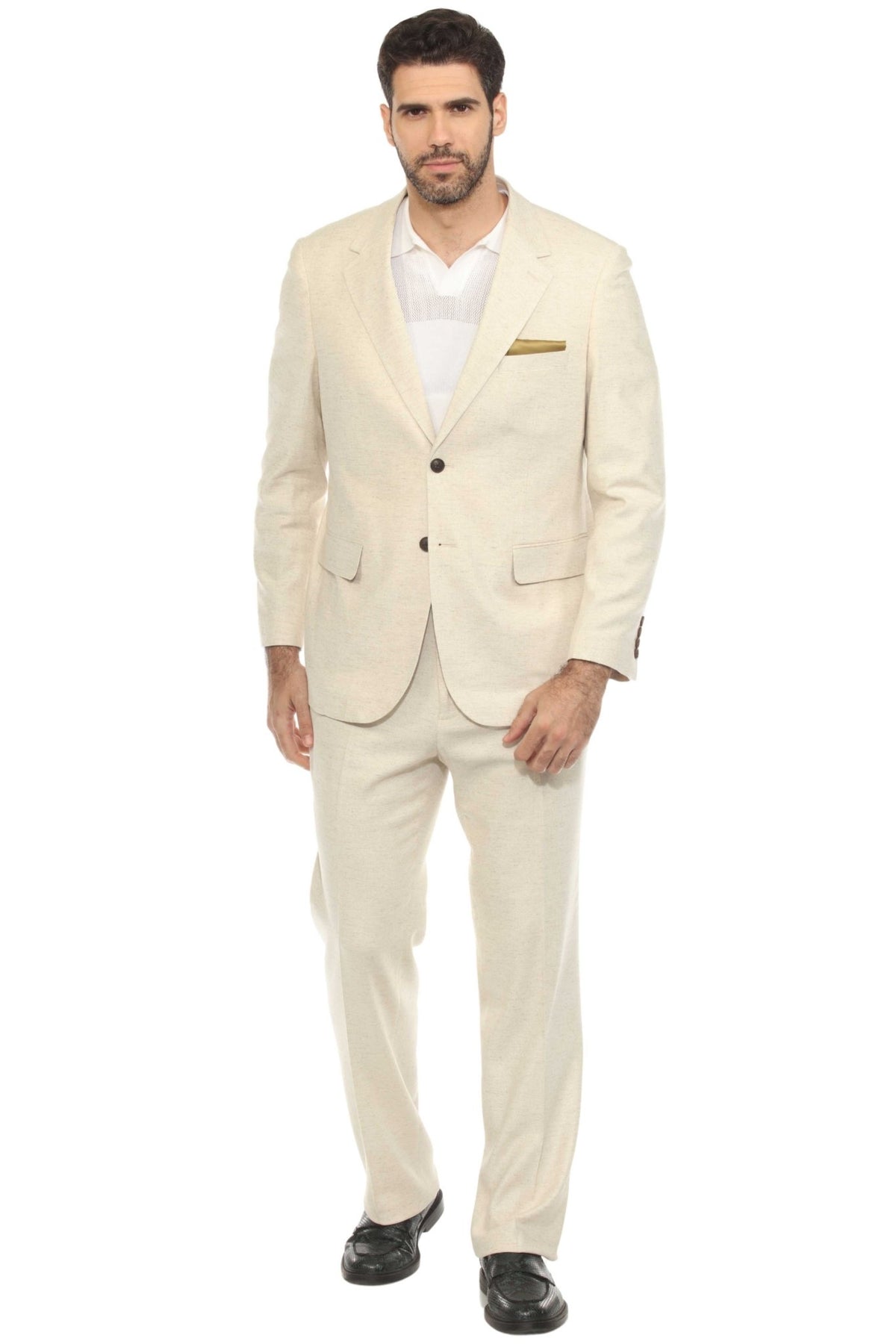 Men’s Modern Stretch Linen-Blend Suit – Natural Beige