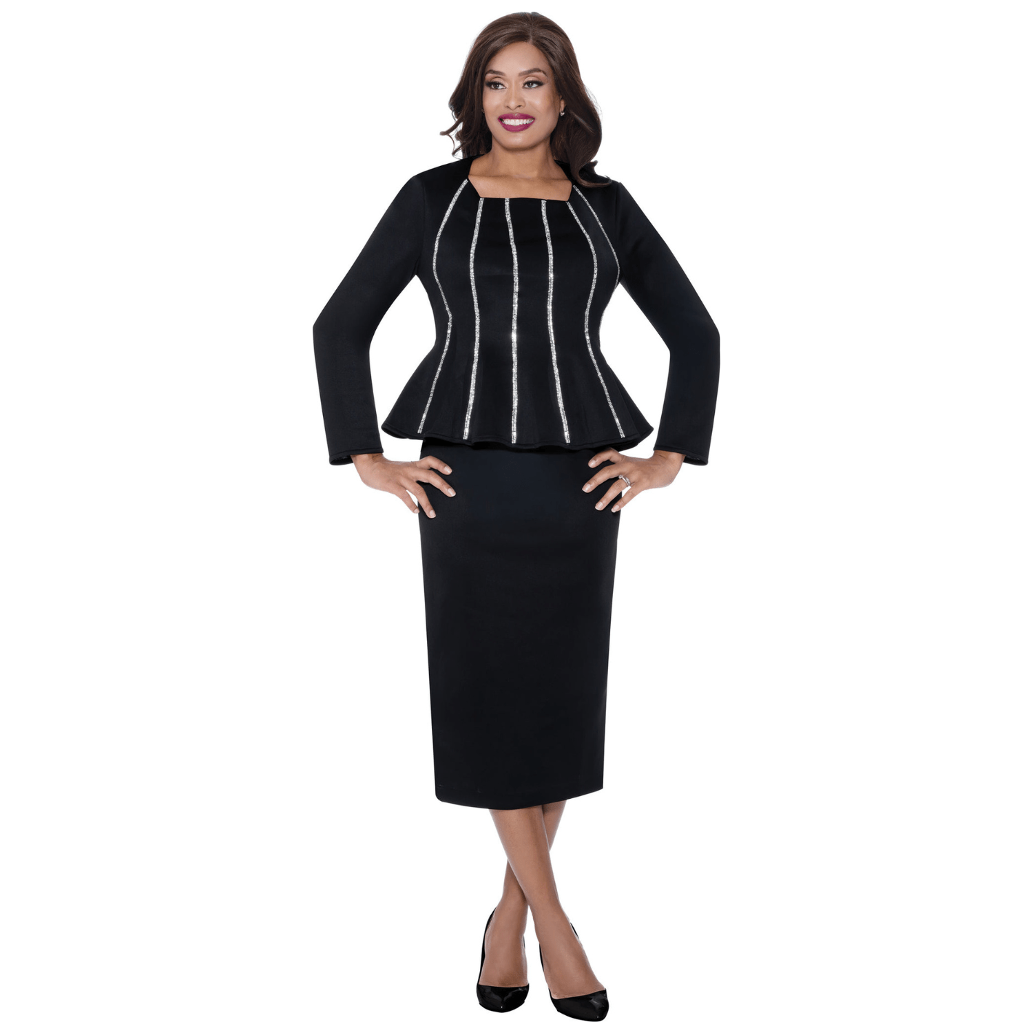 • 2pc High Quality Scuba Women's Church Suit Set With Parallel Rhinestone Stripes Going Up The Torso