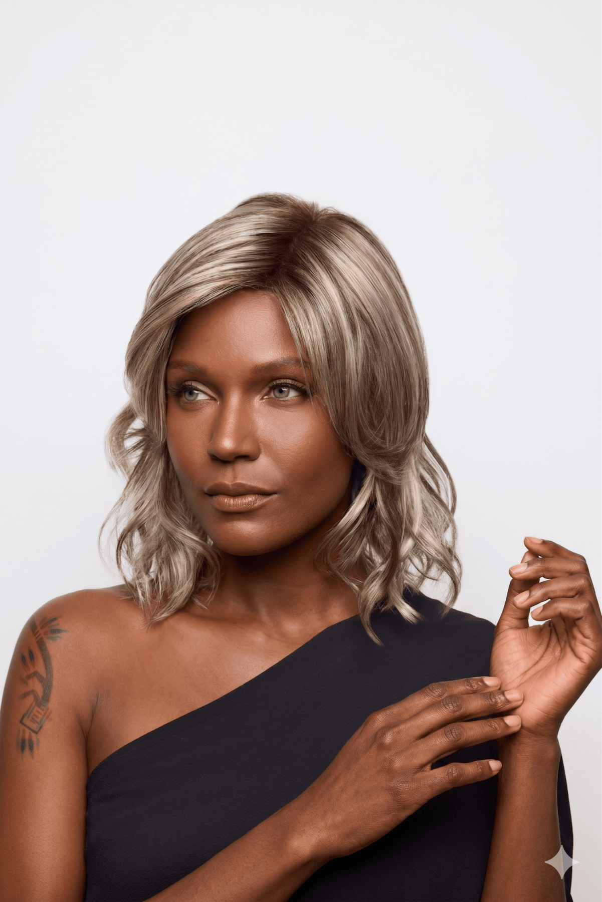 Briar from our Noriko Collection is a medium-length synthetic wig. This wavy ready-to-wear wig is a soft textured chic bob. The effortless side swept fringe adds movement and flatters all face type. Its lace front will give you a natural look with the partial monofilament base. Briar’s cap construction has adjustable tabs in the back nape area to allow a more comfortable fit. The result is a comfortable fit with a natural look that is both fashionable and easy to wear.