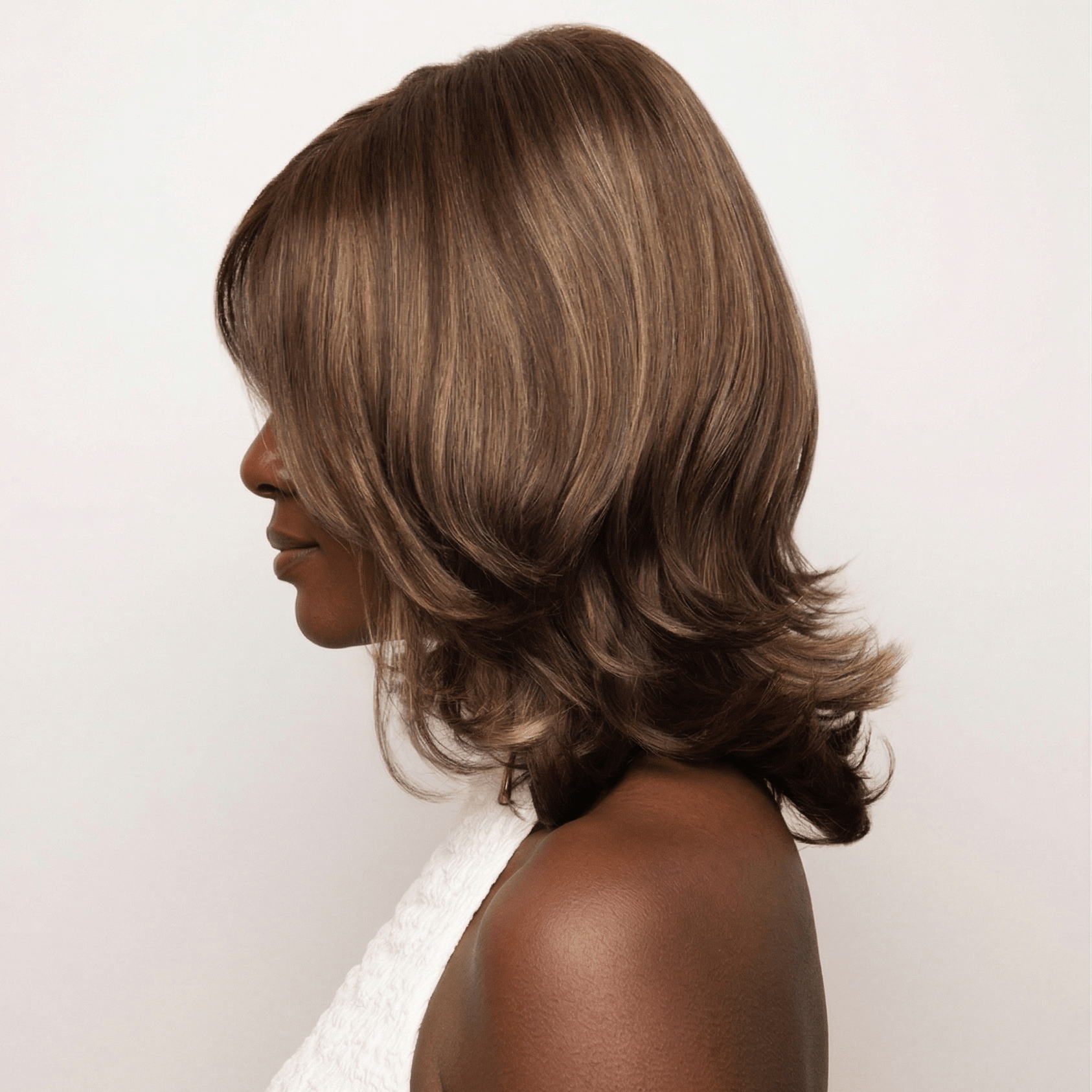 Carrie from our Noriko Collection is a mid-length synthetic wig. This wavy ready-to-wear wig is an attention grabber with its tousled, curly style that falls just below the shoulder and has a soft, face-framing fringe. Carrie is machine made with adjustable tabs in the back nape area to allow a more comfortable fit. This style will give you that classy look that will have you feeling beautiful.