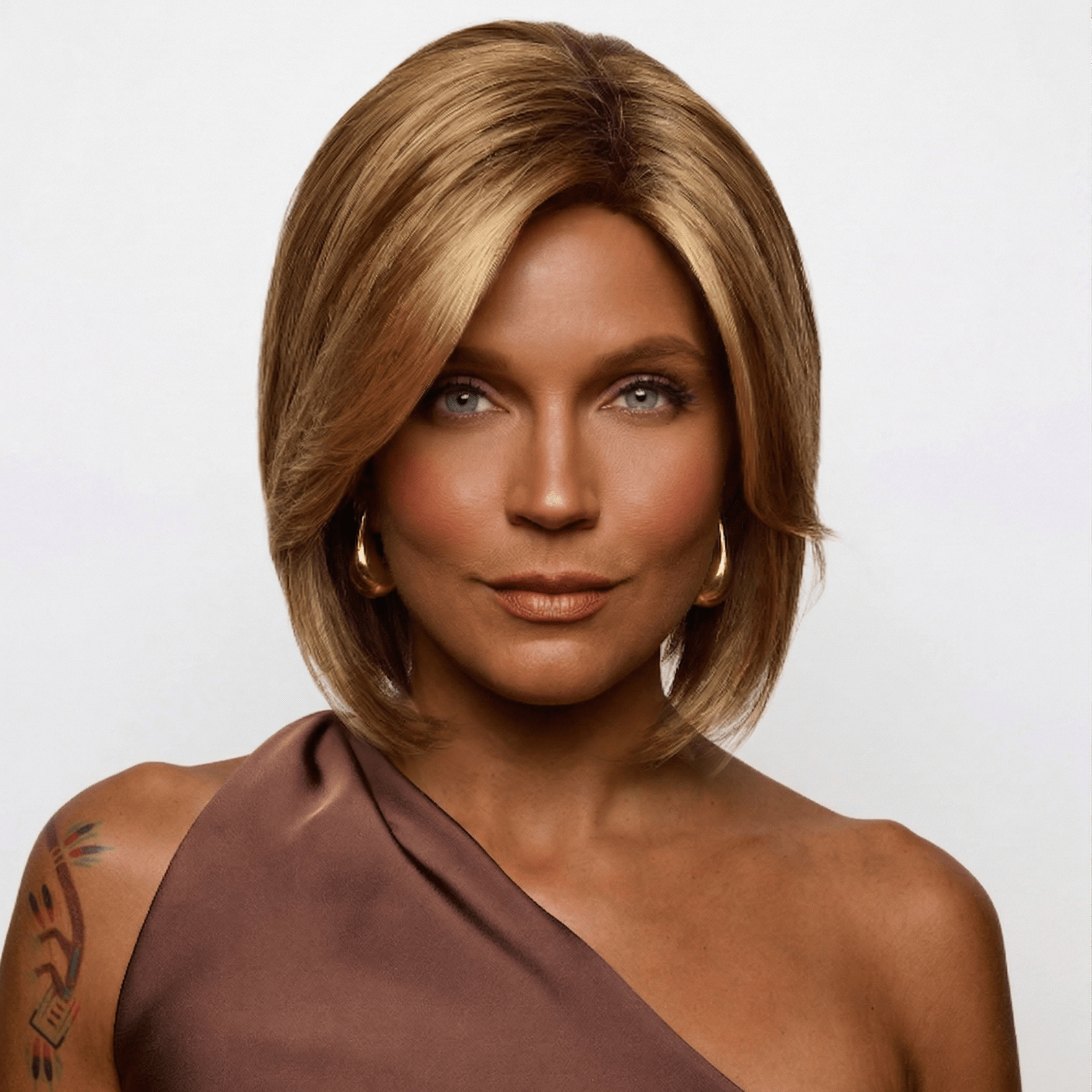 May from our Noriko Collection is a short-length synthetic wig. This straight ready-to-wear wig with elegance, this style is a relaxed bob with a wispy perimeter and feathery swept sides. May is machine made with adjustable tabs in the back nape area to allow a more comfortable fit. The result is a comfortable fit with a natural look that is both fashionable and easy to wear.