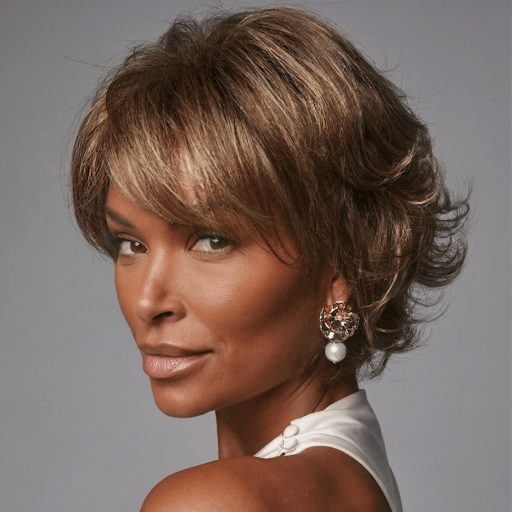 Sandie from our Noriko Collection is a short-length synthetic wig. This curly ready-to-wear wig is a textured bob with a tousled finish. Sandie is machine made with adjustable tabs in the back nape area to allow a more comfortable fit. The result is a comfortable fit with a natural look that is both fashionable and easy to wear.