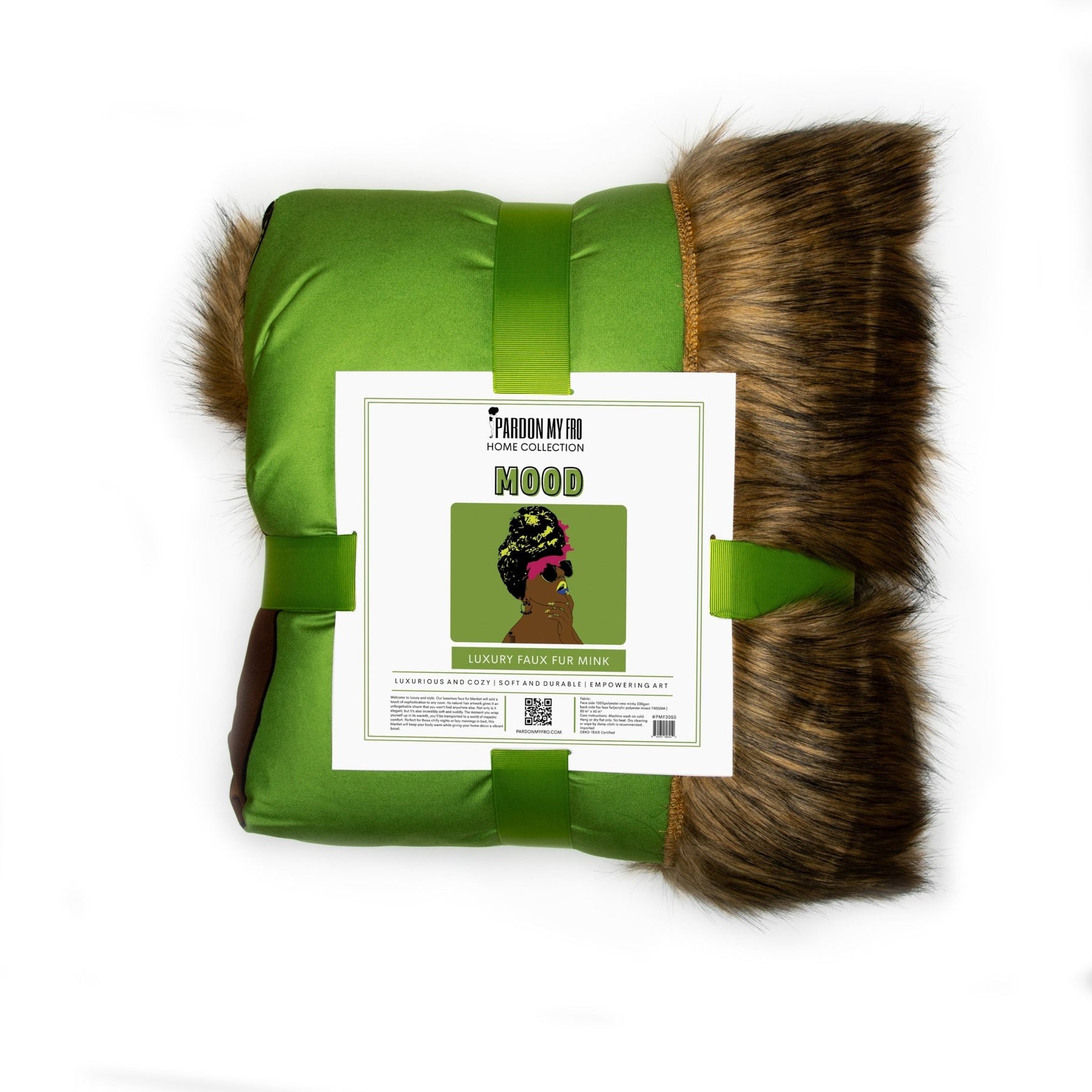 It’s time for a luxurious upgrade of your home décor with the new MOOD LUXURY Faux Fur Mink Blanket! Filled with vibrant color, a fun and funky design, and the luxurious feel of fur, this blanket is the perfect way to add some pizzaz to your space. It features a full back and trim made of real faux fur mink, which gives a soft and elegant feel that will keep you comfortable as you lounge around. With its vibrant colors and bold look, this blanket embodies the fiery spirit of our favorite fashionista MOOD. She simply loves her turban and the fun and dope way she mixes and matches colors and trends. Now everyone can bring that same energy home with the MOOD LUXURY Faux Fur Mink Blanket. It’s the perfect item to add a touch of empowerment and energy to any space. Get ready to turn up the heat and add some sophistication to your lounge. Get your MOOD LUXURY Faux Fur Mink Blanket today!
