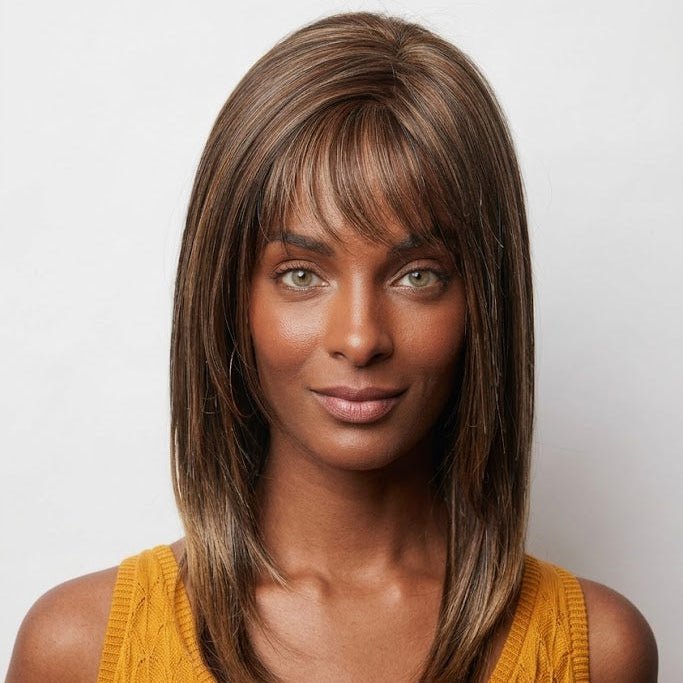 Arden from our Amore Collection is a medium synthetic wig. This straight ready-to wear wig is a youthful and inspirational style. If you are looking for a face- framing style with the option to change hair part and fringed base on personal preference this is your look. Our Arden cap construction is Deluxe Monofilament. Monofilament is covered with softnet material for softer/airy mesh for maximum comfort and breathability with lace front.