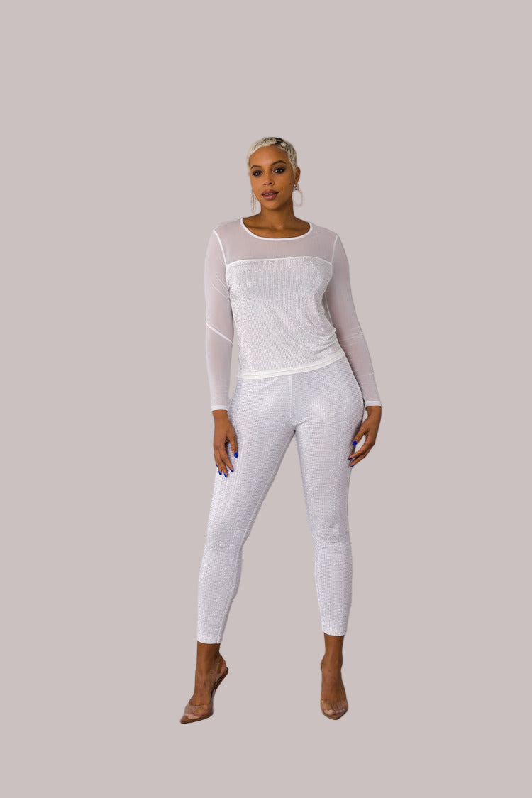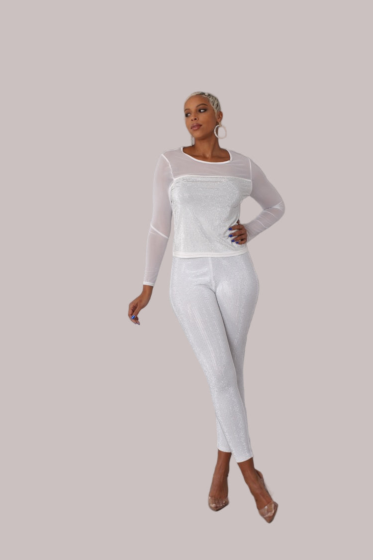 Shine in the Mesh Blouse Top – Rhinestone Design Black Long Sleeve 82198 from For Her NYC. This elegant black blouse features sheer mesh fabric with sparkling rhinestone embellishments, combining sophistication with glamour. Perfect for formal events, parties, or adding a touch of sparkle to your everyday wardrobe. Crafted for comfort and style, this top is available in sizes S–2X.