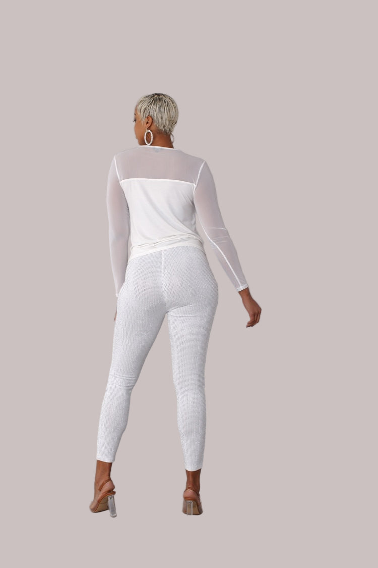 Mesh Blouse Top – Rhinestone Design Black Long Sleeve 82198